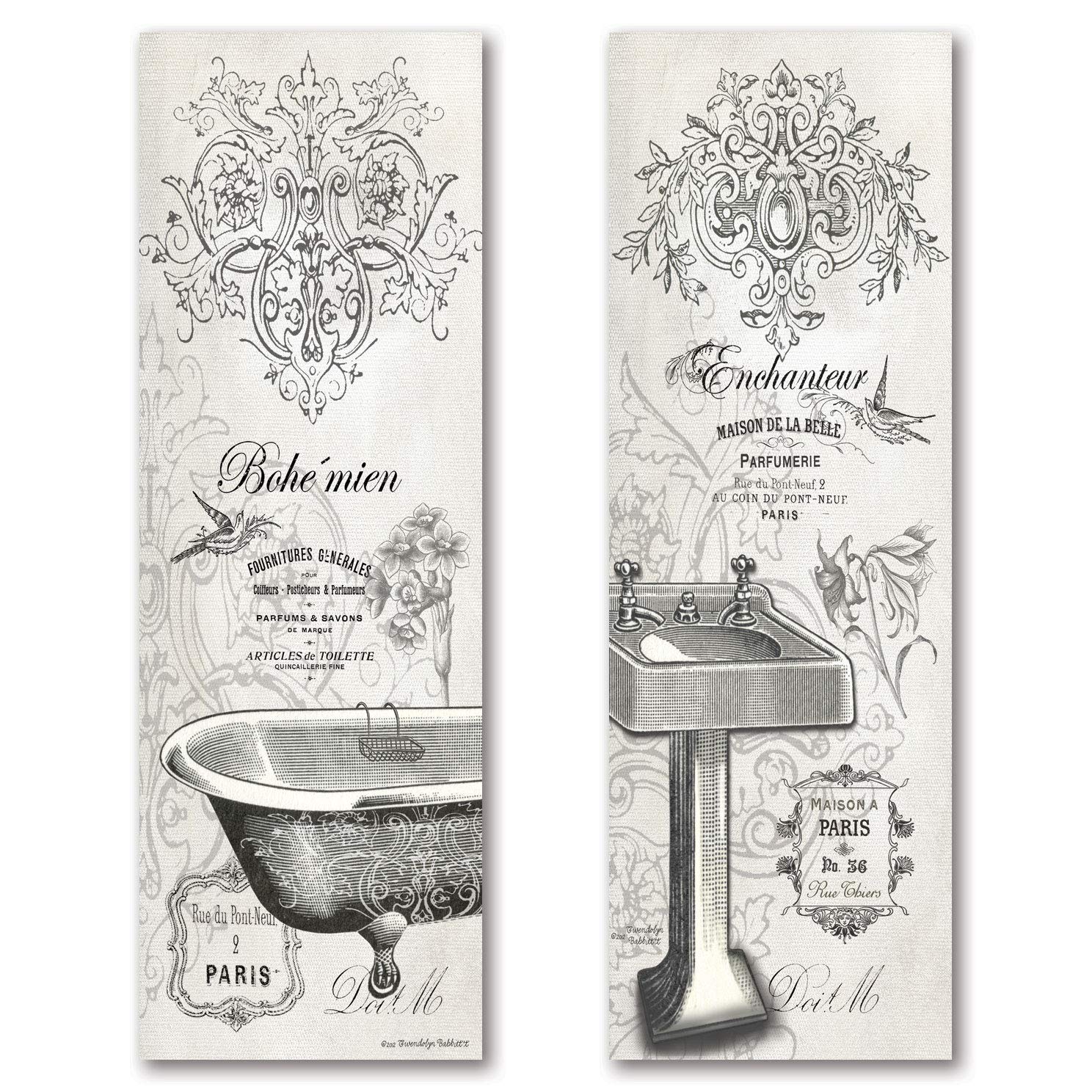 2 Vintage French Claw-foot Bathtub and Sink Panel Prints; Two 6x18inch UNFRAMED Paper Posters