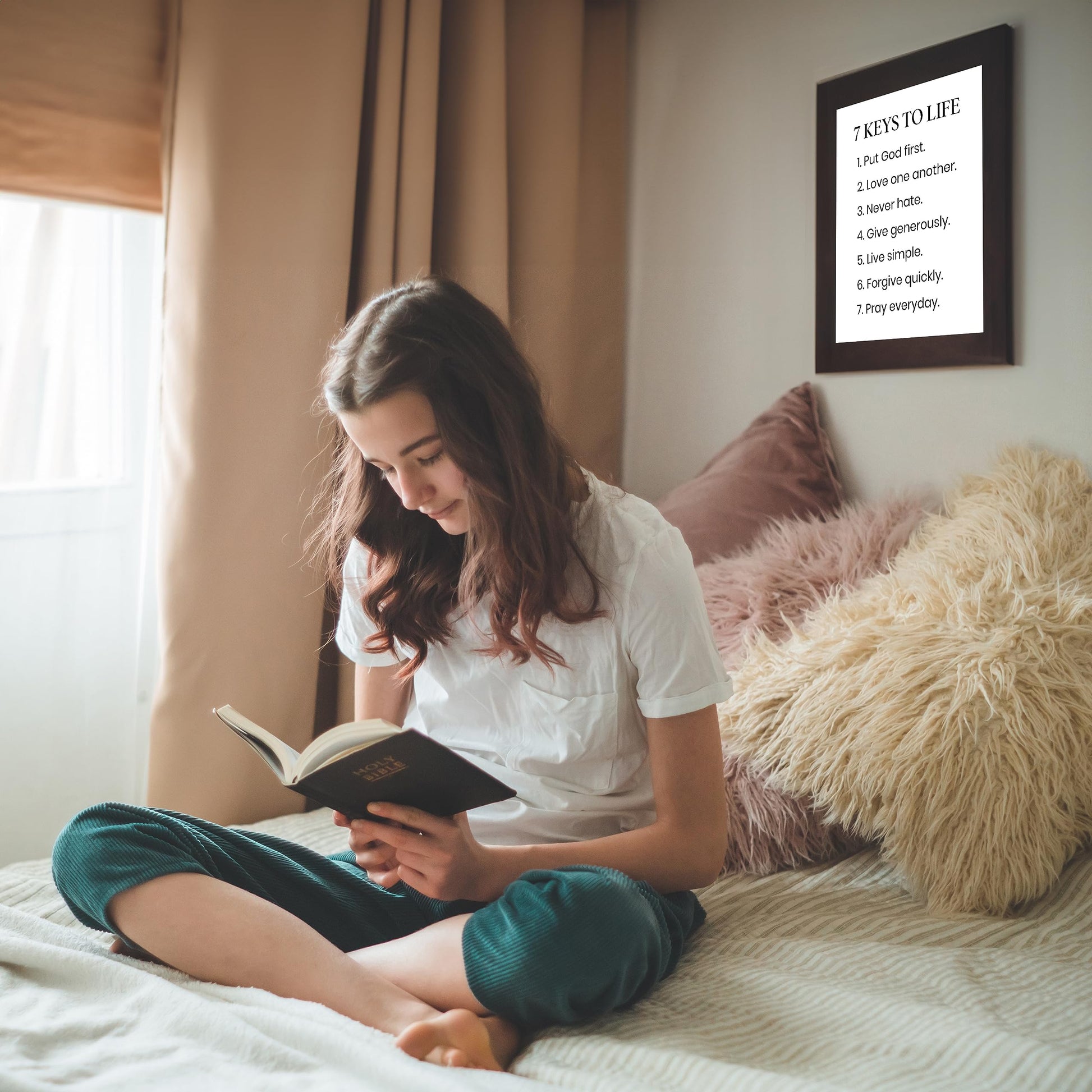 - Excellent Motivational Wall Decor- Transform any room into an inspiring sanctuary with our "7 Keys to Life" Inspirational wall art poster Print. This vintage Christian wall decor poster print adds a touch of elegance and motivation to your surroundings.