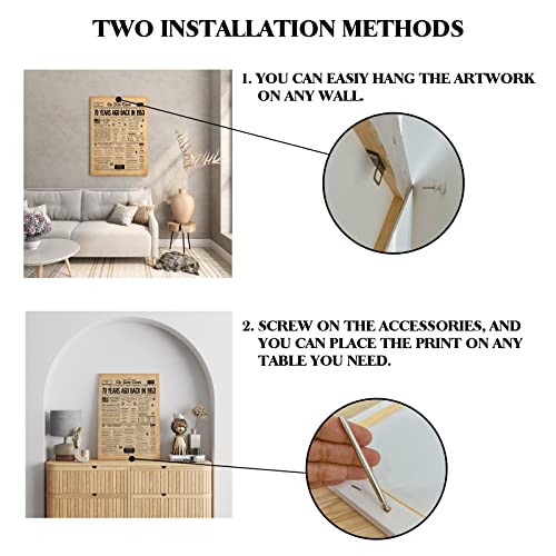 - Products Include: 70th Birthday newspaper wall art canvas poster decorative, size is 11.5×15 inch (29cm×38cm). This canvas prints already stretched on solid wooden frames, canvas prints continues wrapped around to the sides of the wooden frame.