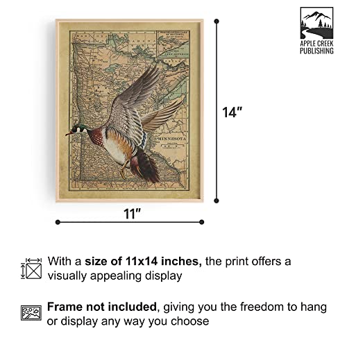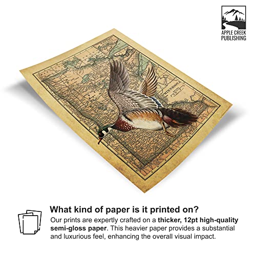 Apple Creek Minnesota State Map Wood Duck Goose Call Hunting Decoy Poster Art Print 11x14 Cabin Wall Decor Pictures