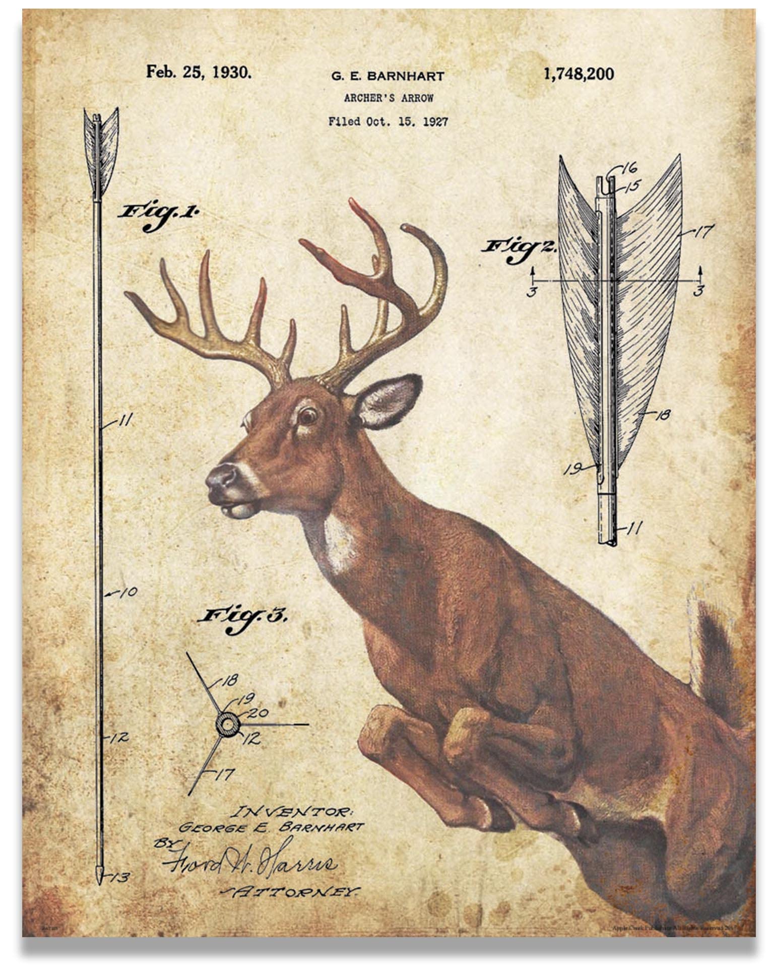 Apple Creek Whitetail Deer Bow Arrow Archery Hunting Patent Poster Art Print Reproduction 11x14 Wall Decor Pictures