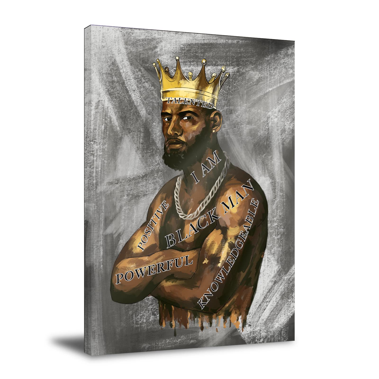 Black Man Poster Wall Art African American Man Portrait Room Decor Black King Inspirational Poster Canvas Prints 16X24 inch
