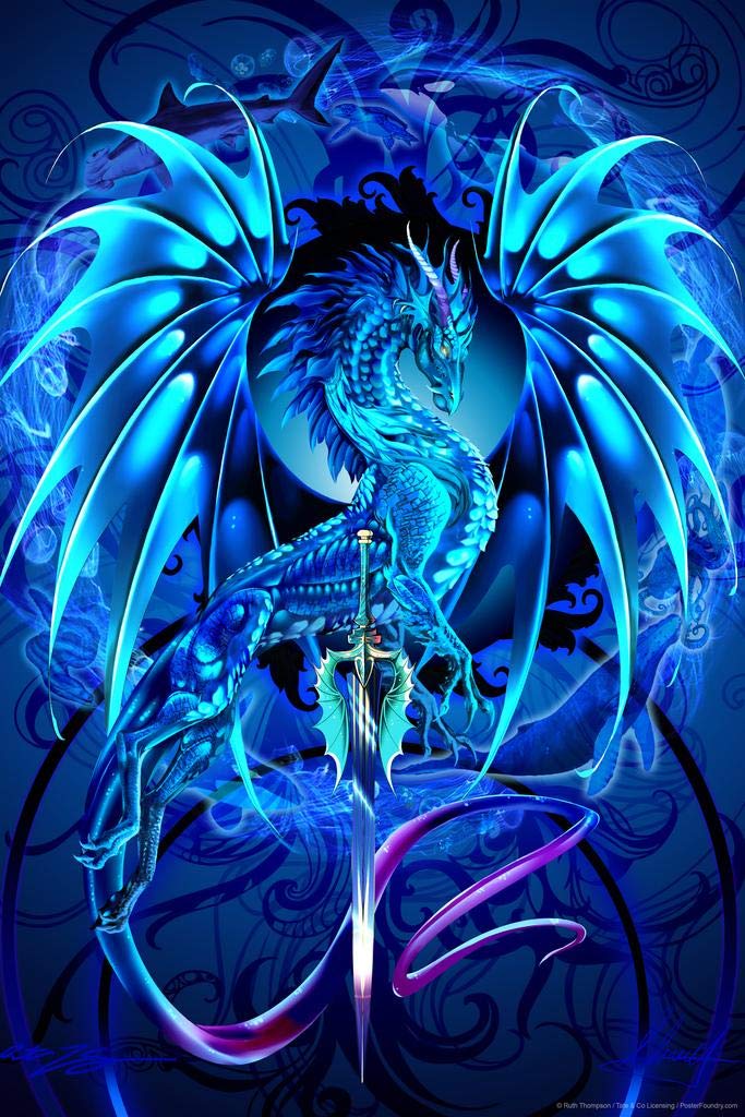 Blue Dragon Dragonsword Seablade Ruth Thompson Fantasy Poster Nina Nylander Knight Sword Thick Paper Sign Print Picture 8x12