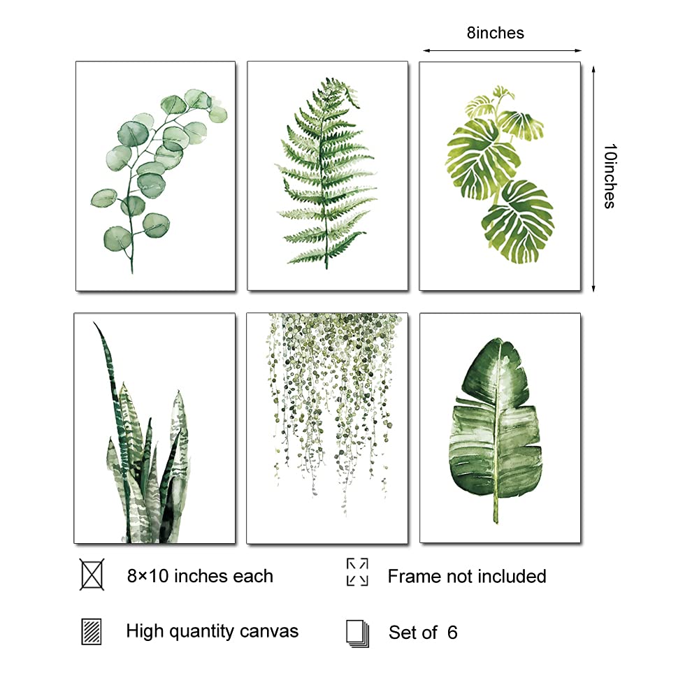 Botanical Wall Art Prints Set of 6 Tropical Leaf,UNFRAMED Farmhouse Home Decor Plant Leaves Pictures 8”x 10” Minimalist Boho Canvas Posters Green Nature Wall Decor for Living Room Bathroom Bedroom