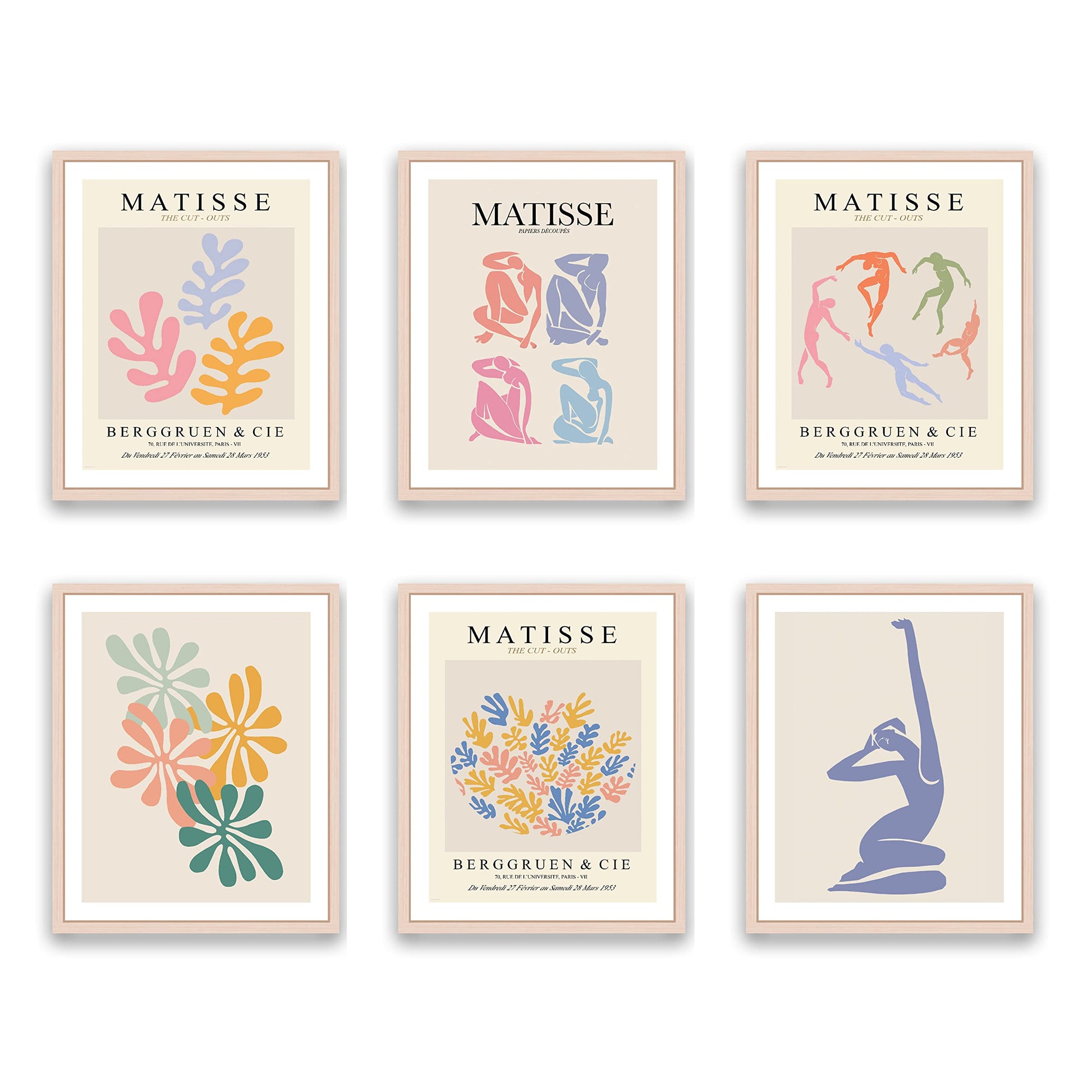 Cornerora Matisse Prints, Matisse Wall Art, Danish Posters, Danish Pastel Wall Décor for Room Aesthetic Henri Mattisse Prints, 8x10 inches unframed, Set of 6 (Pastel Matisse)