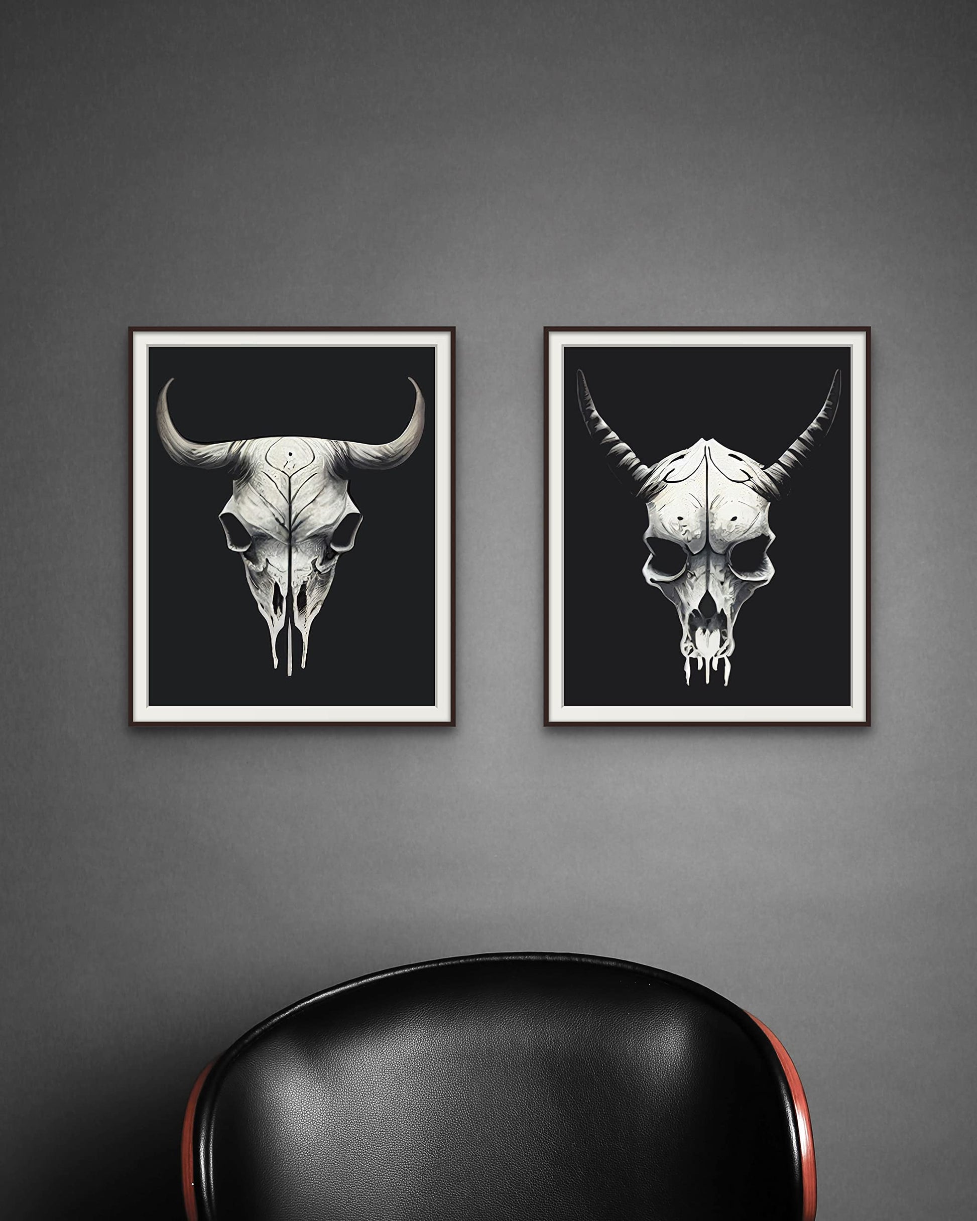 - These versatile cow skull prints can be hung individually or as a set, adding a unique and eye-catching touch to any room in your home.