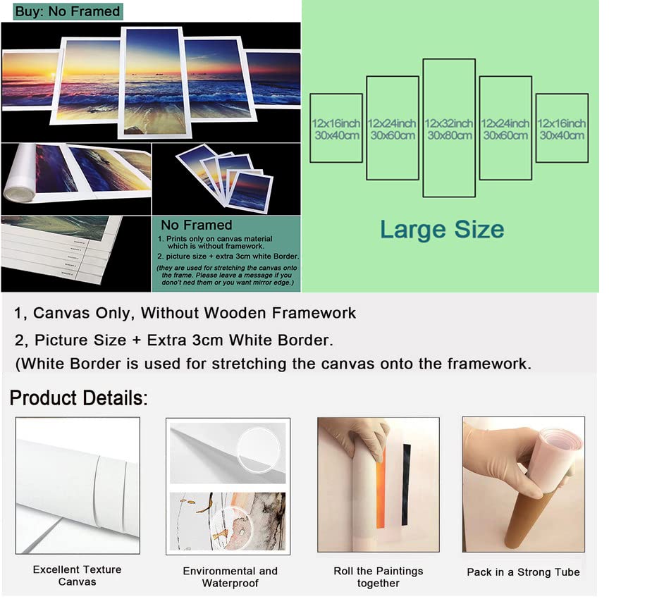 - Size:5 Panels Canvas 60''W x 32''H; Each panel size: 12x16inchx2pcs,12x24inchx2pcs,12x32inchx1pcs(30x40cmx2pcs,30x60cmx2pcs,30x80cmx1pcs)