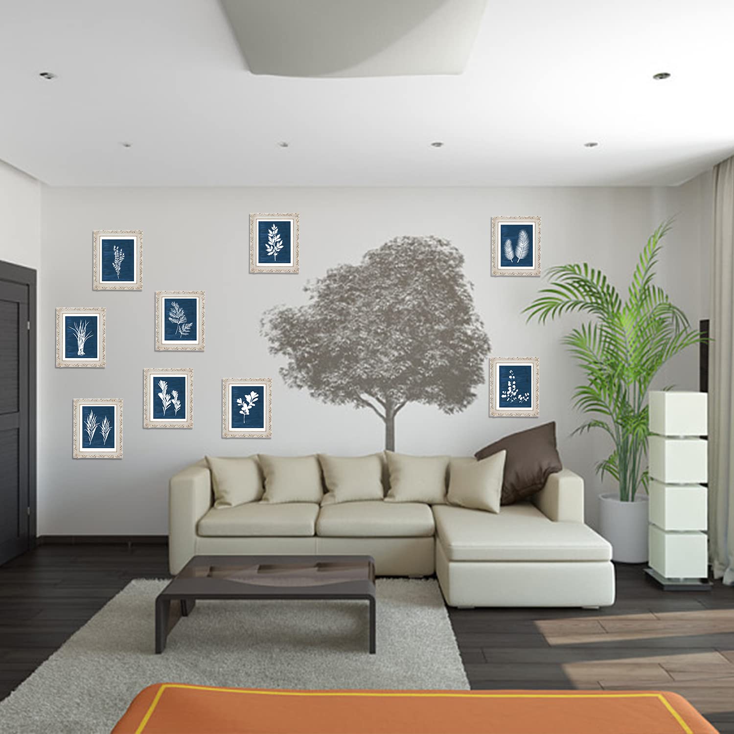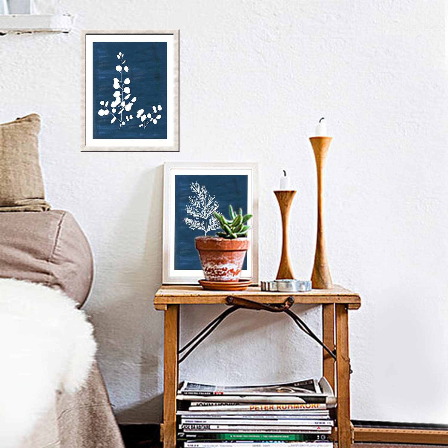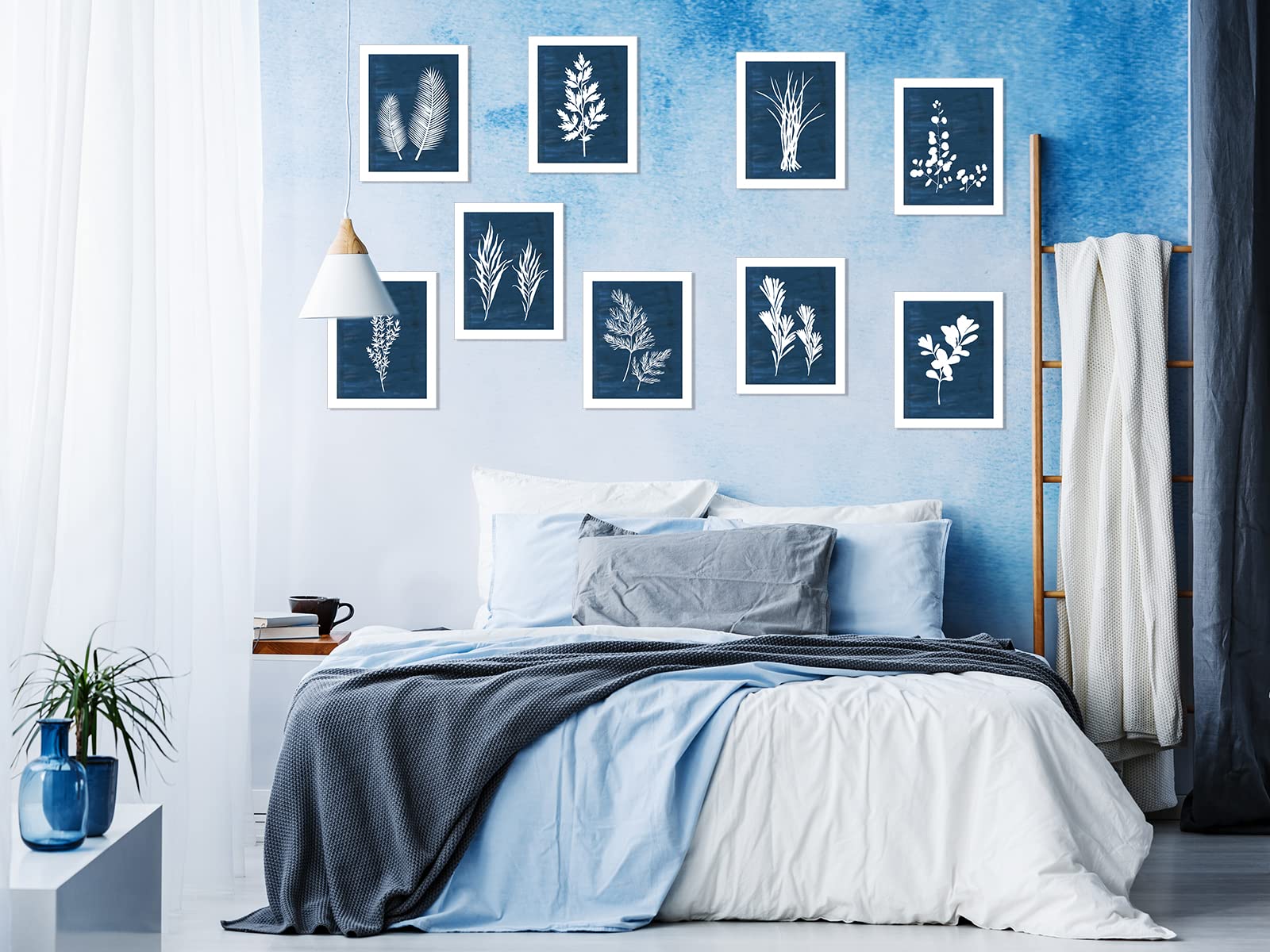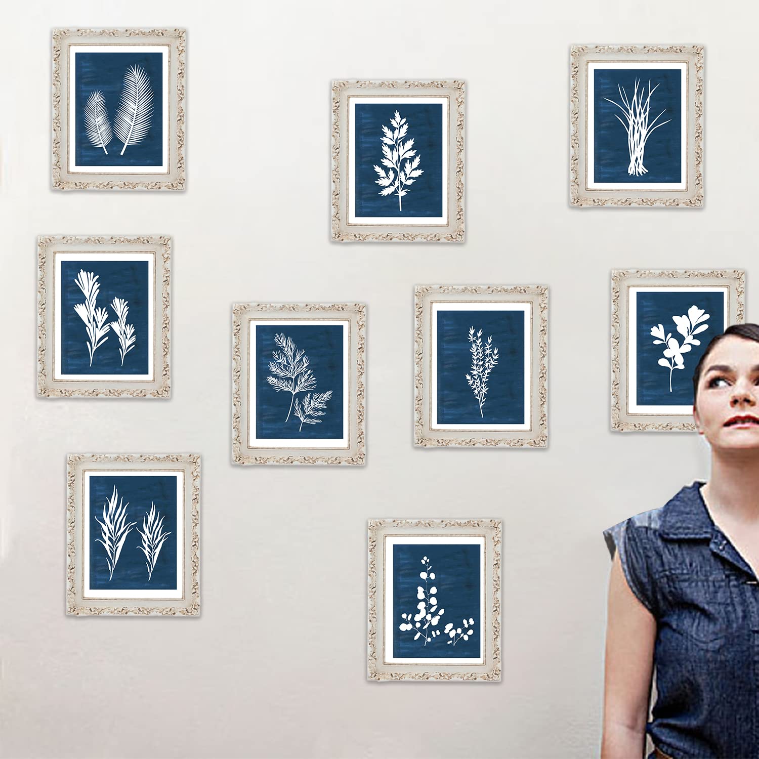 DRBLUEB 9 Pieces Botanical Wall Art Prints Navy Blue White Tropical Plant Flower Pictures Posters Boho Wall Decor for Bedroom Living Room Kitchen Home Decoration 8*10inch,UNFRAMED