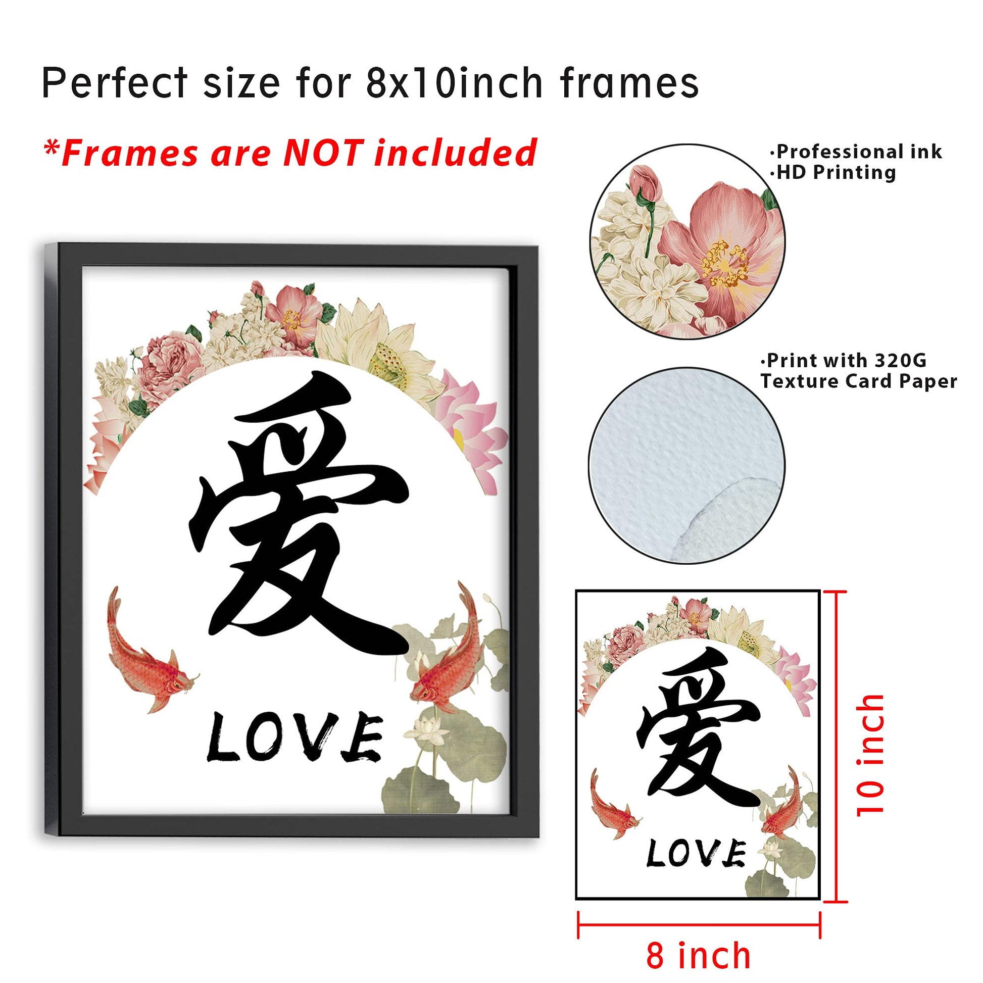 - HIGH QUALITY MATERIAL: PRINTS DIMENSIONS - 8 inch x 10 inch. Our wall art painting are printed on STURDY 320GSM thick card paper. They are durable and dust resistant. The combination of Chinese calligraphy and Chinese painting elements, so that the text decoration is no longer monotonous. They are perfect for decorating your room or as a gift for your friends and family.
