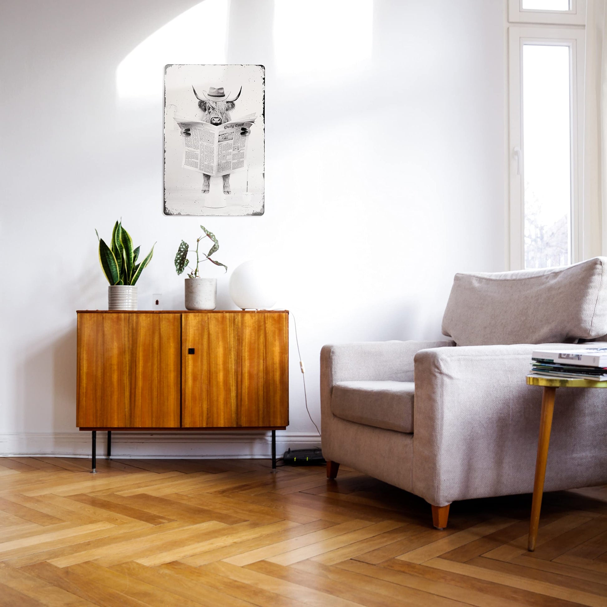 Funny Highland Cow Metal Wall Art, Black and White Cow Print Stuff Tin Sign in Farmhouse, Rustic and Retro Style Cow Poster for Bathroom, Living Room, Bedroom, Kids Bathroom Wall Decor (8"x12", Retro)