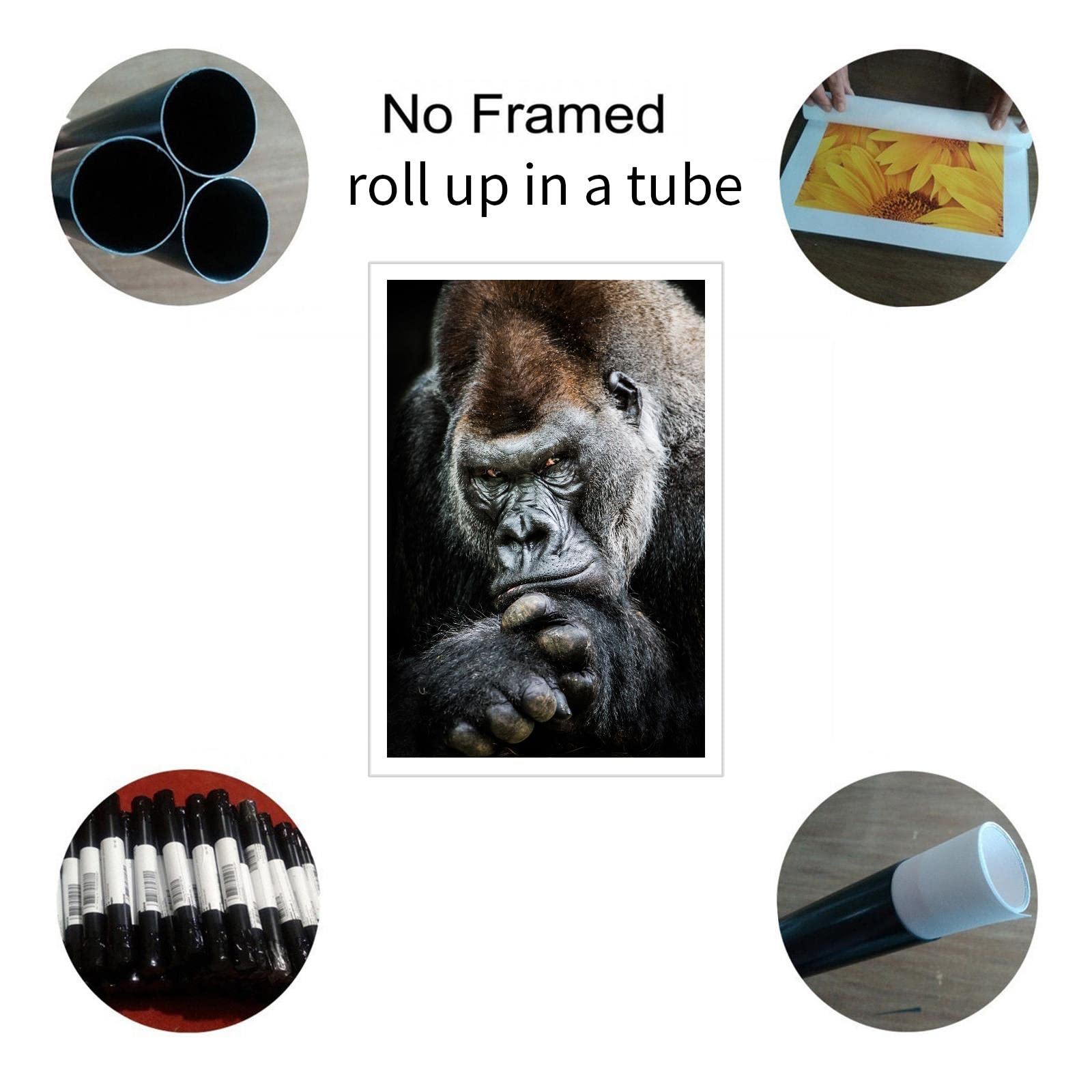 Gorilla Canvas Pictures Wall Art For Living Room Bedroom Orangutan Big Monkey Animal Poster Print Decor Unframed18 x12