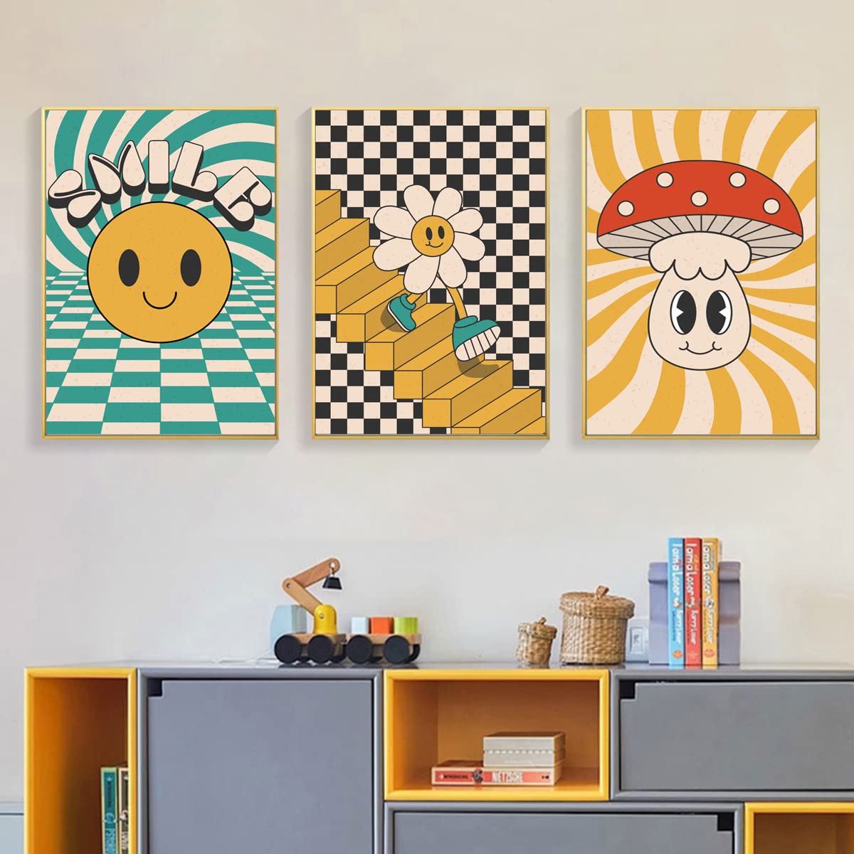 - Our retro wall art prints feature fun, nostalgic 60s and 70s style retro characters and share a positive message with positive and fun nostalgic 60s and 70s style retro character smiley faces and positive quotes.
