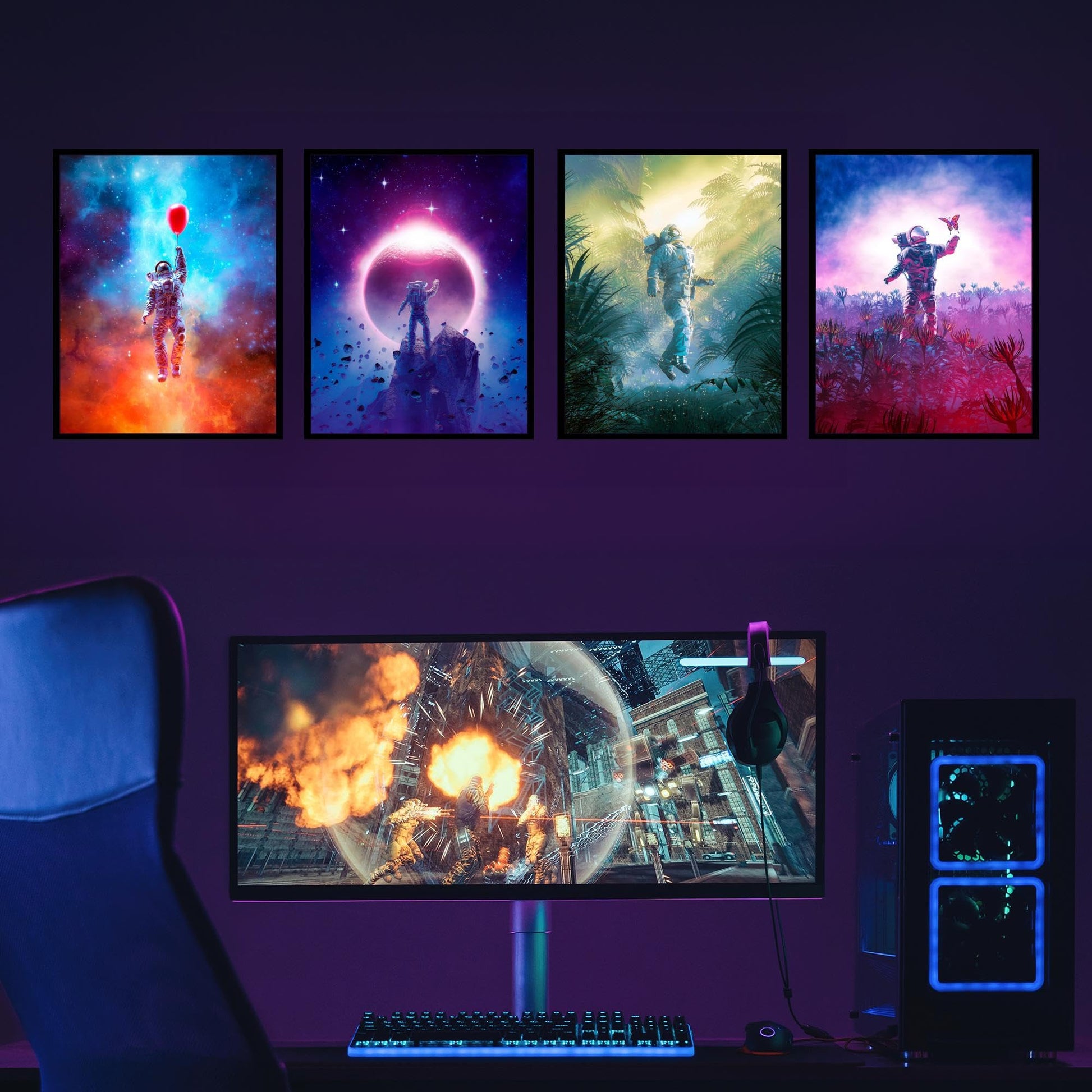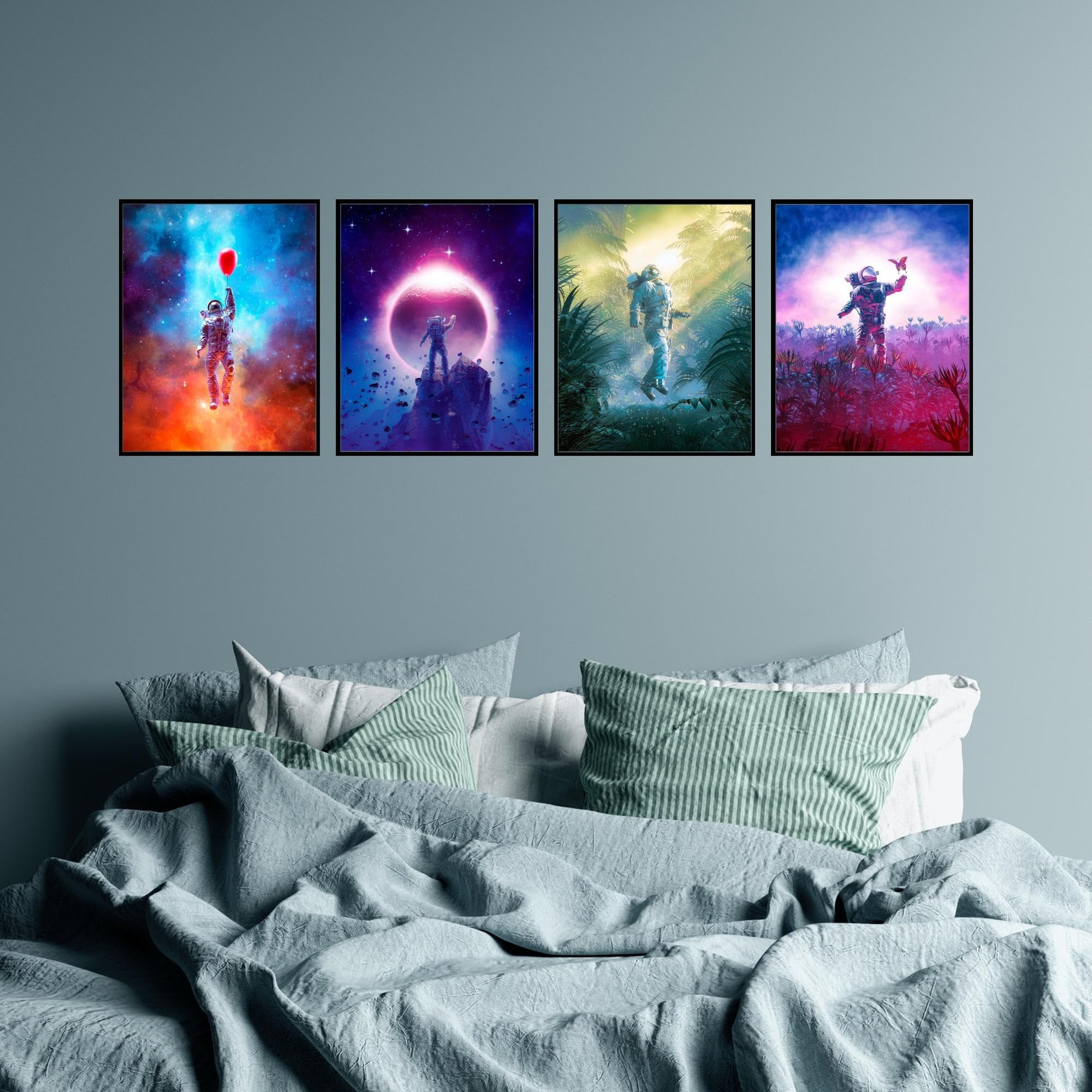 - SPACE POSTER: With this set of 4 (8x10") galaxy art prints, you'll receive a variety of designs that feature astronauts, galaxies, and other elements of the cosmos. Each poster is unique, so you can choose the ones that fit your style and interests best.
