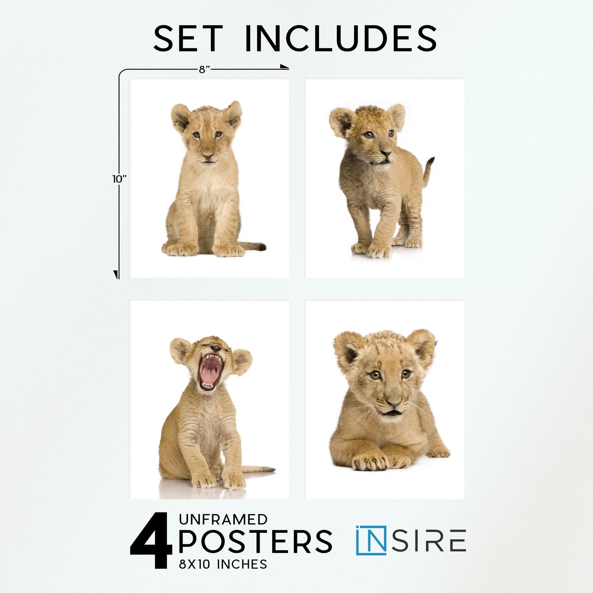 - UNFRAMED LION NURSERY ART: Bring a touch of the wild into your home with Insire's set of 4 animal wall art prints. These safari photo's of lions are perfect for creating a safari-inspired look in any room of your home. Whether you're looking for wall art for living room, or bathroom pictures for wall, these living room picture set will add a touch of elegance to your space.