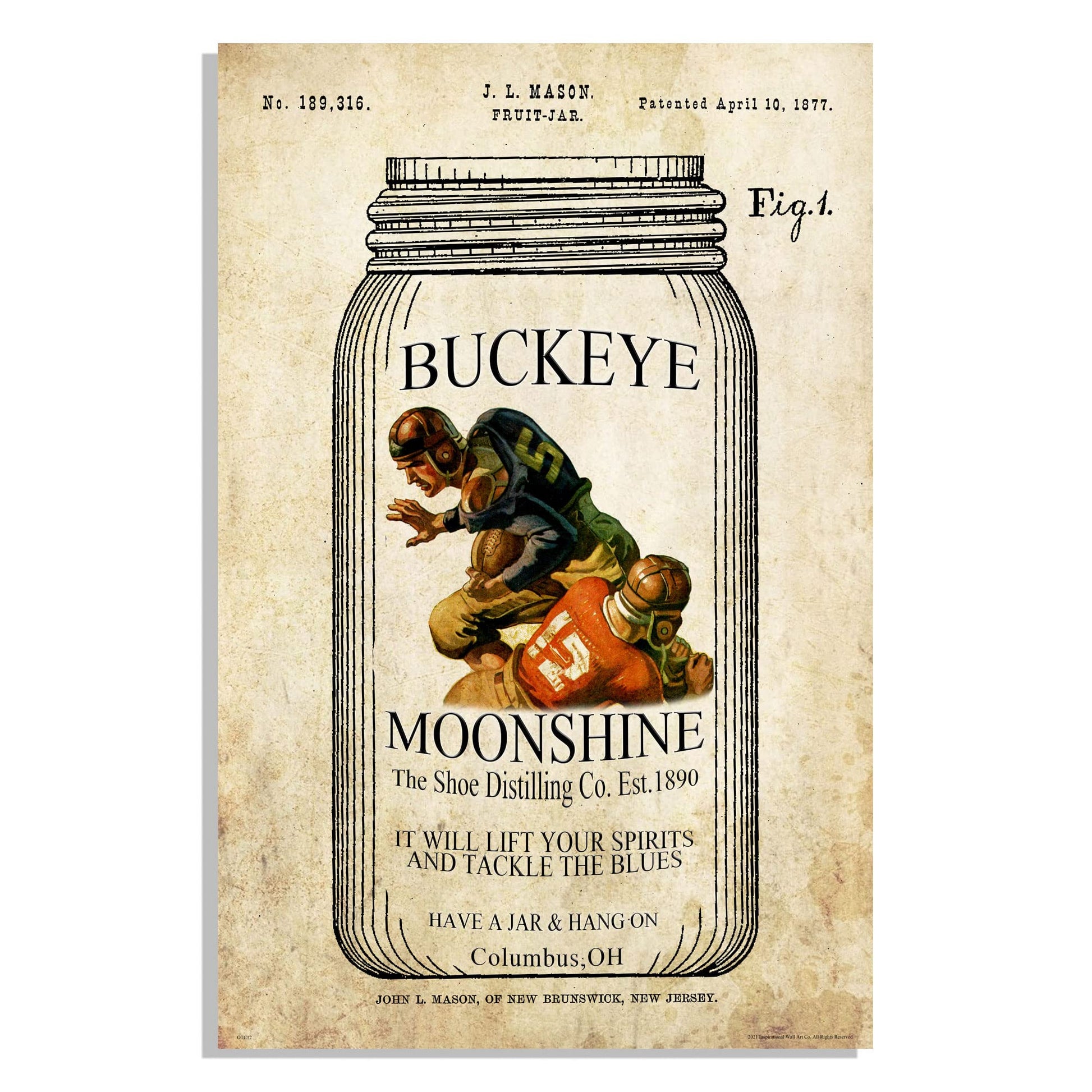 Inspirational Wall Art Co. - Ohio State Buckeyes - Vintage Football Sports Lineman Kids Coach American Motivational Quotes Posters - Print Home Gift Bar Game Room Bedroom Decor - 11X17 inches