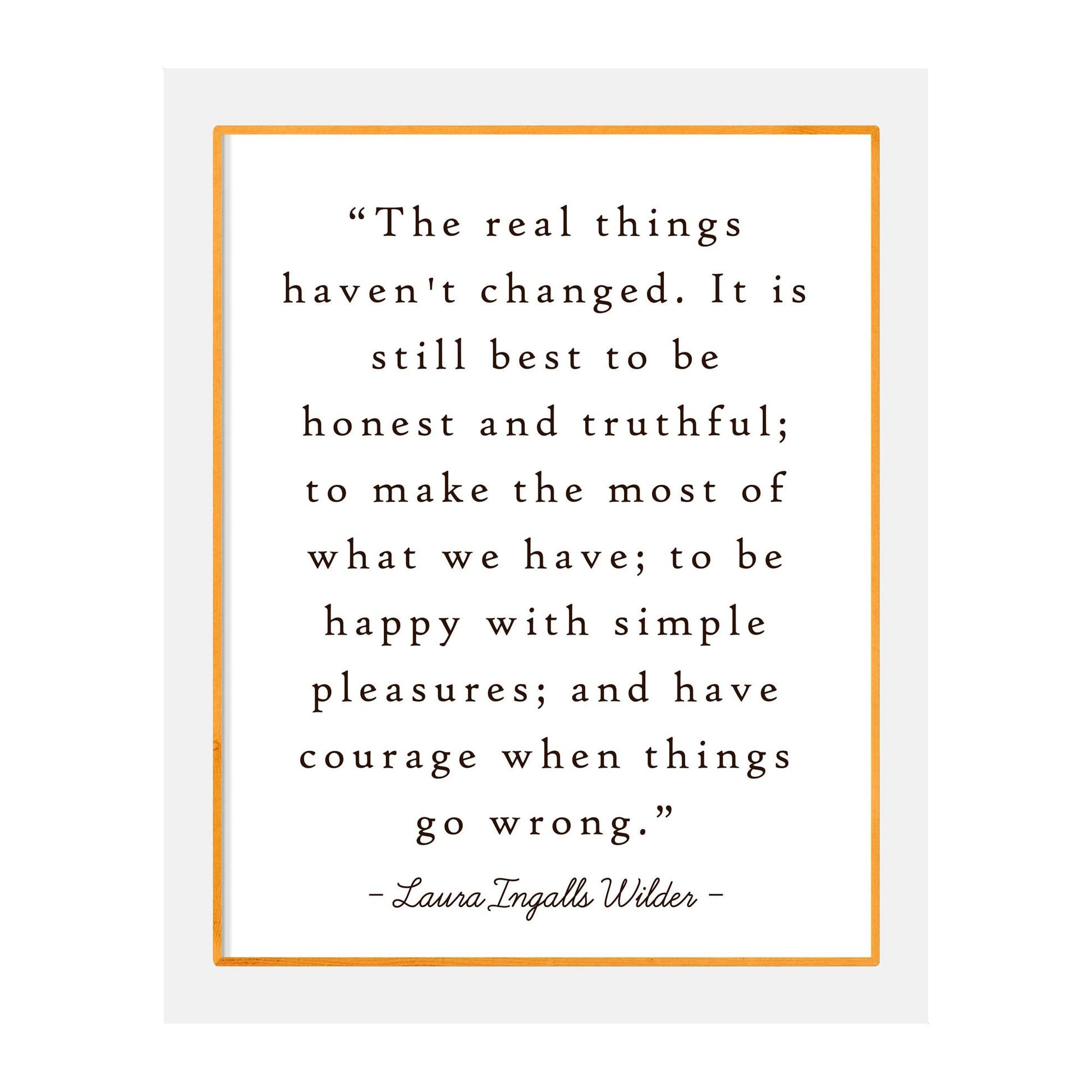 Laura Ingalls Wilder Quotes-"The Real Things Haven't Changed" -Inspirational Wall Art Sign-8 x 10"-Ready to Frame. Motivational Poster Print Ideal for Home-Office-Studio-School-Dorm Decor.
