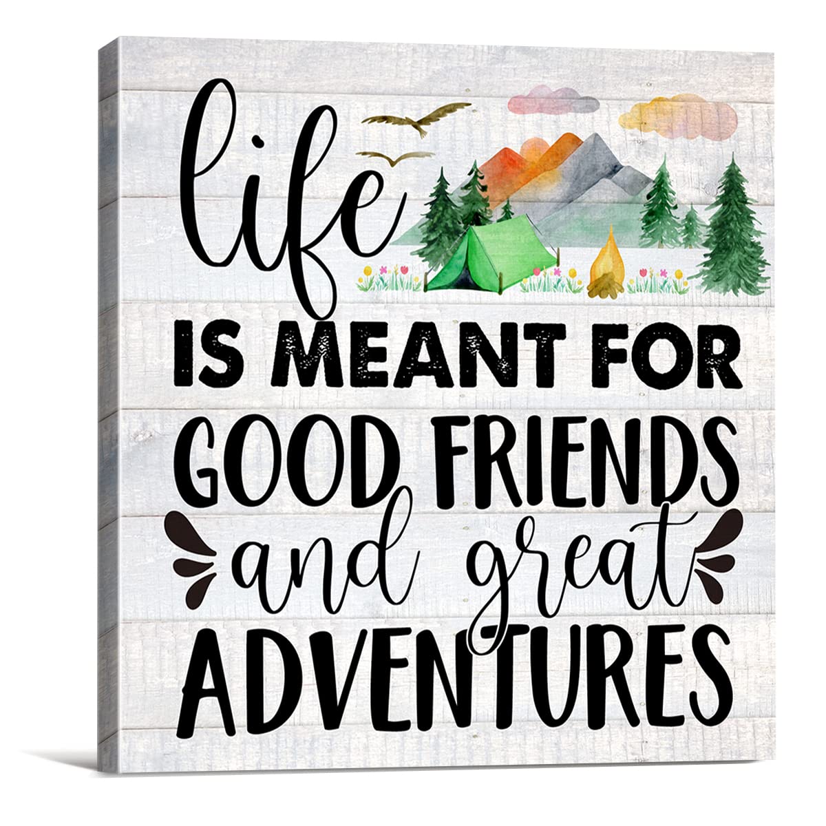 Life is Meant for Good Friends And Great Adventures Farmhouse Canvas Print Wall Art Decor Rustic Camping Sign Painting Poster Plaque Home Decoration (8 X 8 inch, Framed)