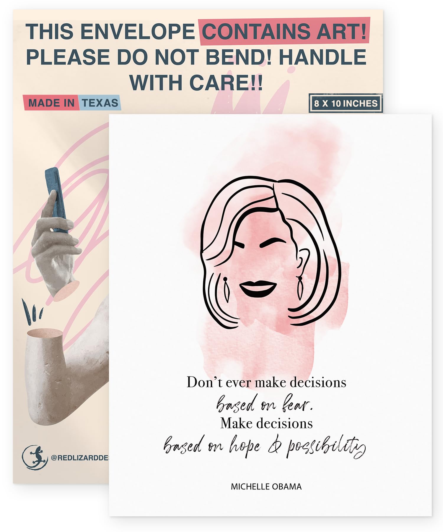 - Michelle Obama Quote Don't Ever Make Decisions Based On Fear Make Decision Based On Hope & Possibility: Unframed office wall art room posters and wall posters - these motivational wall art posters for room aesthetic are NOT canvas or tin sign.