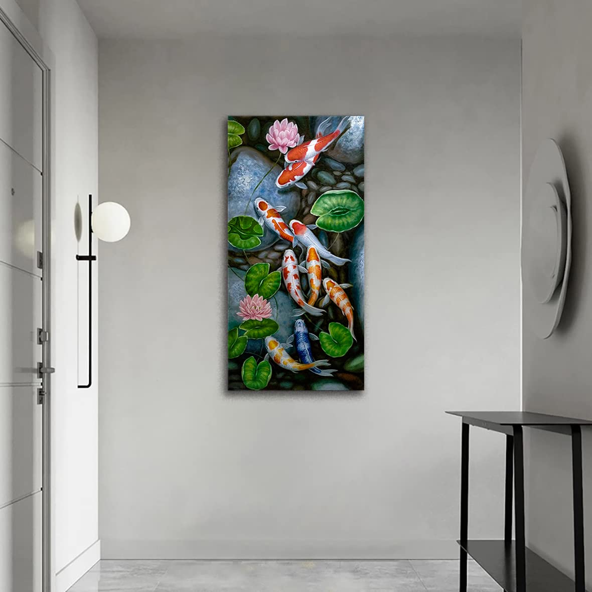 Nine Koi Fish Wall Art Animal Wall Decor Canvas Prints Oil Paintings Lotus Pond Koi Fish Artwork Koi Fish Lotus Pond Pictures Prints Posters for Living Room, Bedroom, Office