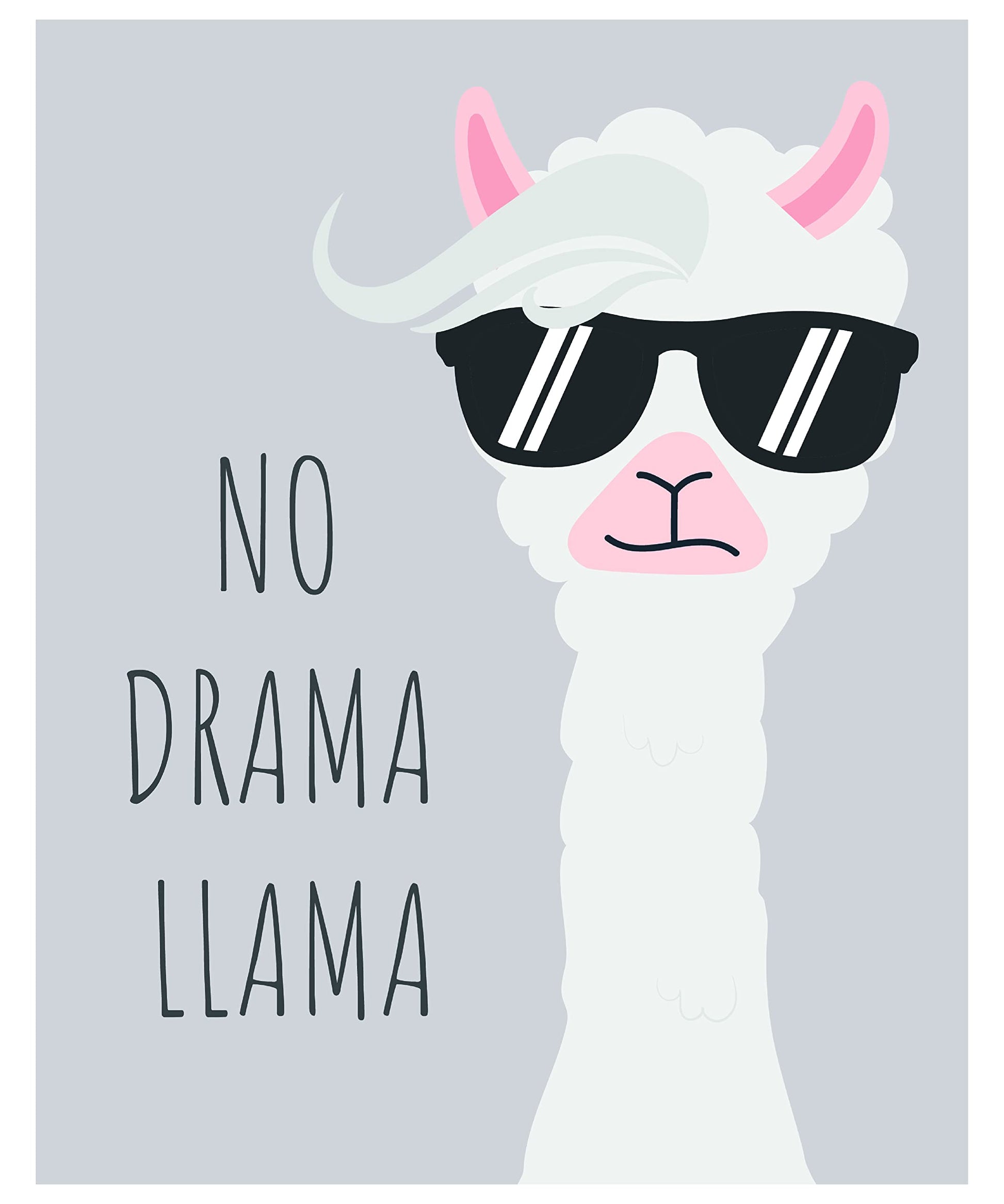 No Drama Llama Funny Poster - No Drama Sign - Funny Gifts For Men Women Friends Kids - Cute Wall Decor for Kitchen Bedroom Bathroom Work Office Classroom - 8x10 Print Unframed