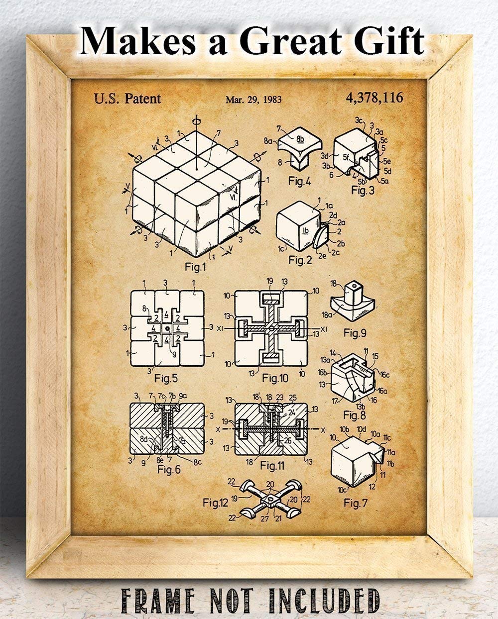 Rubik's Cube Patent Print - Vintage Puzzle Game Wall Art, Home Decor for Kid, Great Gift Idea for Gamer, Classic Bedroom Decor, 11x14 Unframed Poster Print