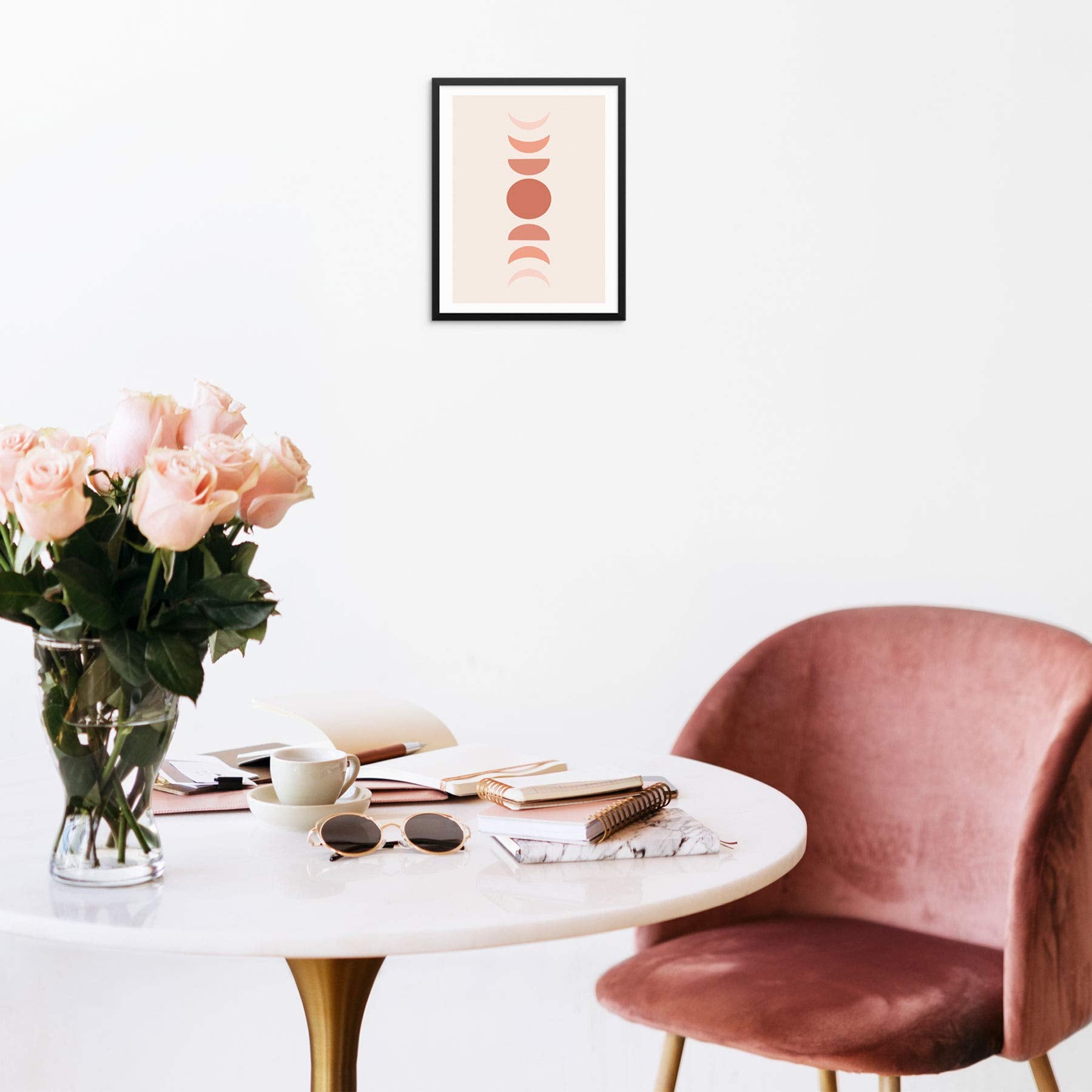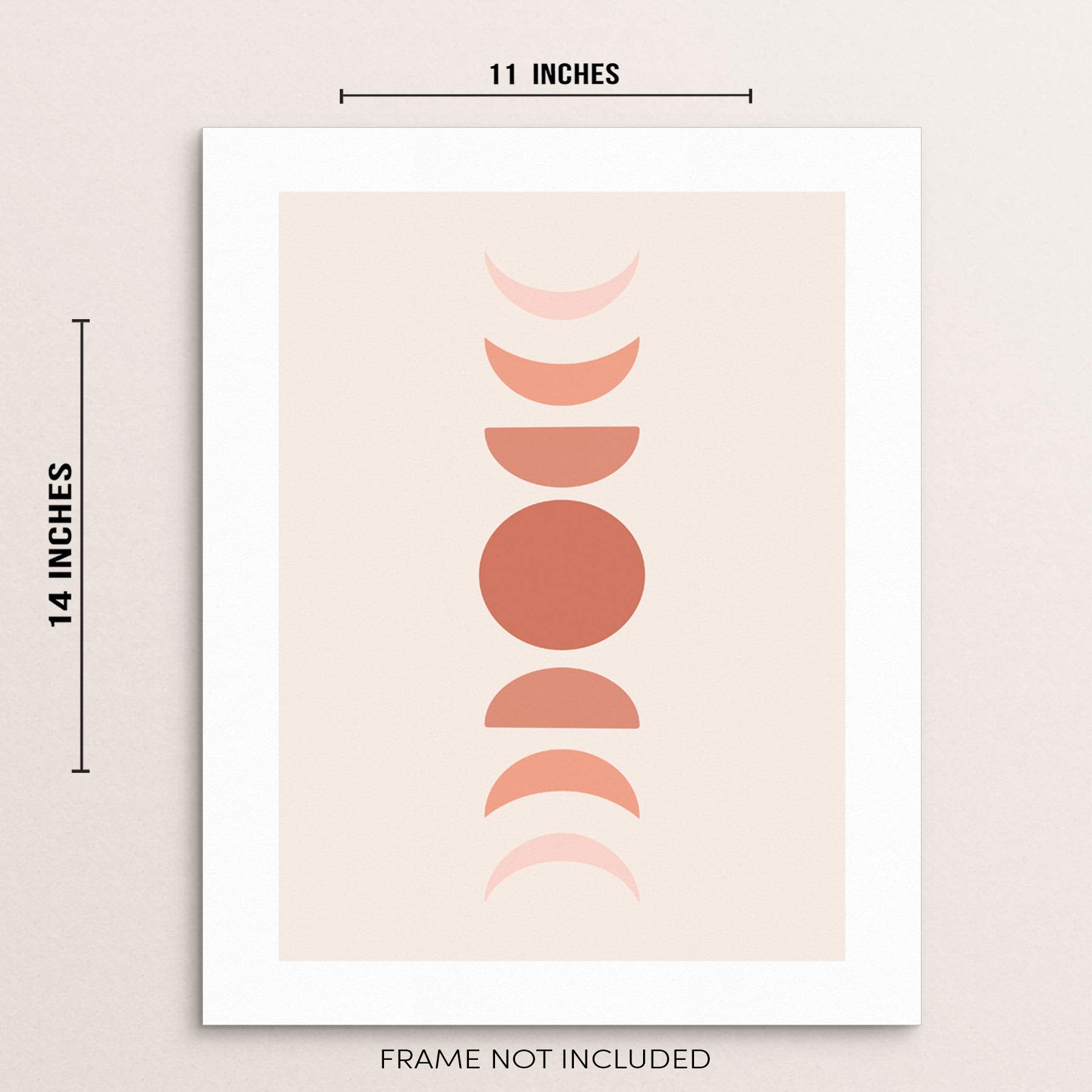 - This minimalist modern terracotta moon phases art print wall poster measures 11 by 14 inches, and it’s UNFRAMED. Pictures are for inspiration only and the frame is NOT included. Colors may vary slightly due to your computer's screen resolution