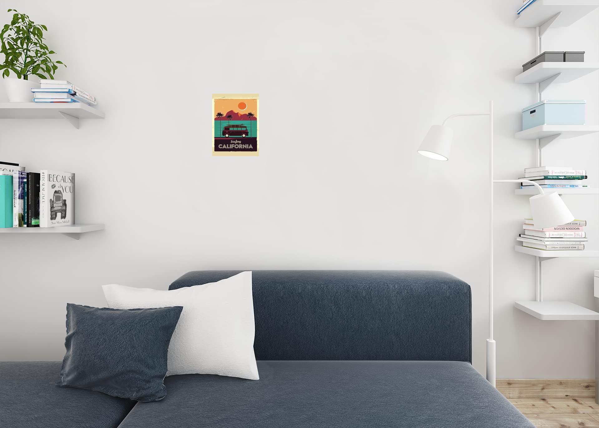 Surfing Poster California Coastline Van Surf Travel Beach Beachy Tropical Paradise Sea Art Graphic Sand Waves Vintage Retro Thick Paper Sign Print Picture 8x12