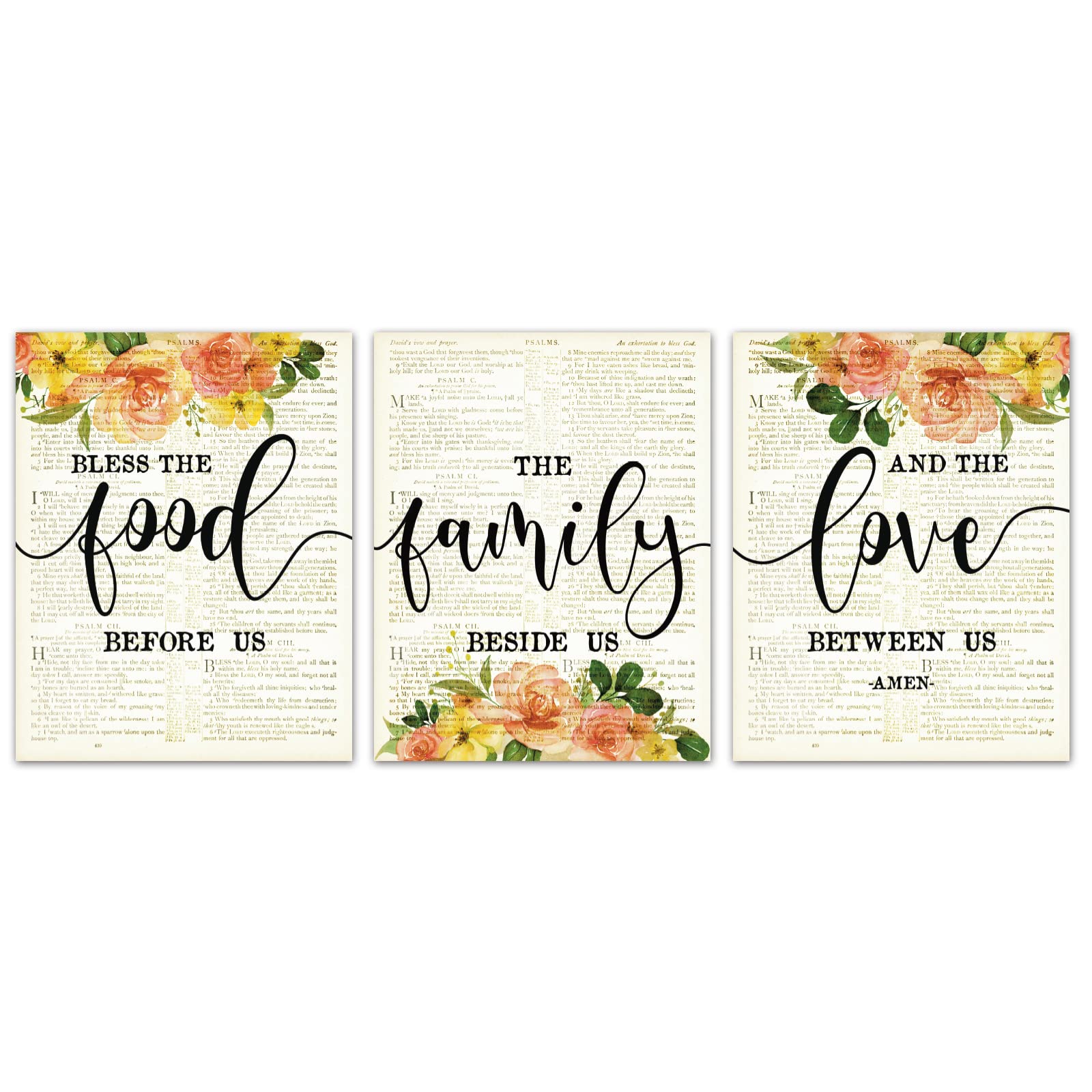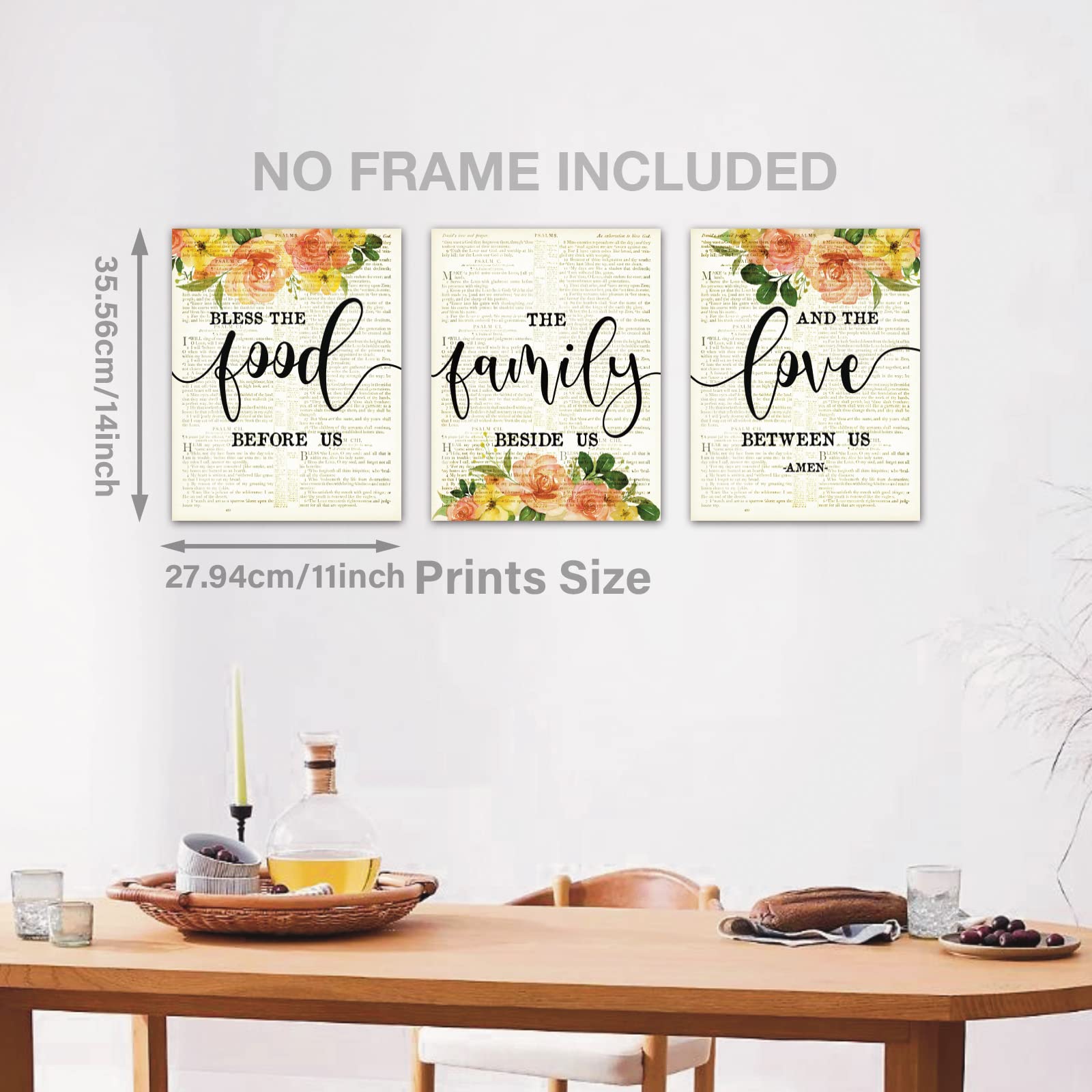 SWITHOM Unframed Dining Room Wall Decor - Bless The Food Before Us Vintage Style Wall Art Prints, 11x14 inch Motivational Kitchen Decor, Set of 3 Bible Verse Wall Art Decor Poster for Dining Room