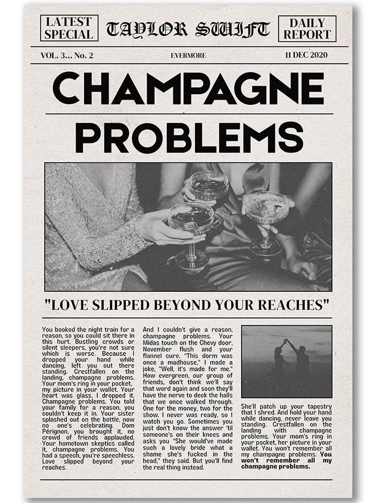 Vintage Newspaper Style Swift Poster Canvas Wall Art Music Album Posters for Room Aesthetic Song Lyric Print Wall Decor for Living Room Bedroom (16x24in Unframed,B)