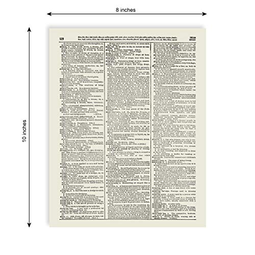 - The artwork is printed an authentic antique dictionary page from the early to mid-1900’s. The pages that are used for each print are random pages from a vintage dictionary.