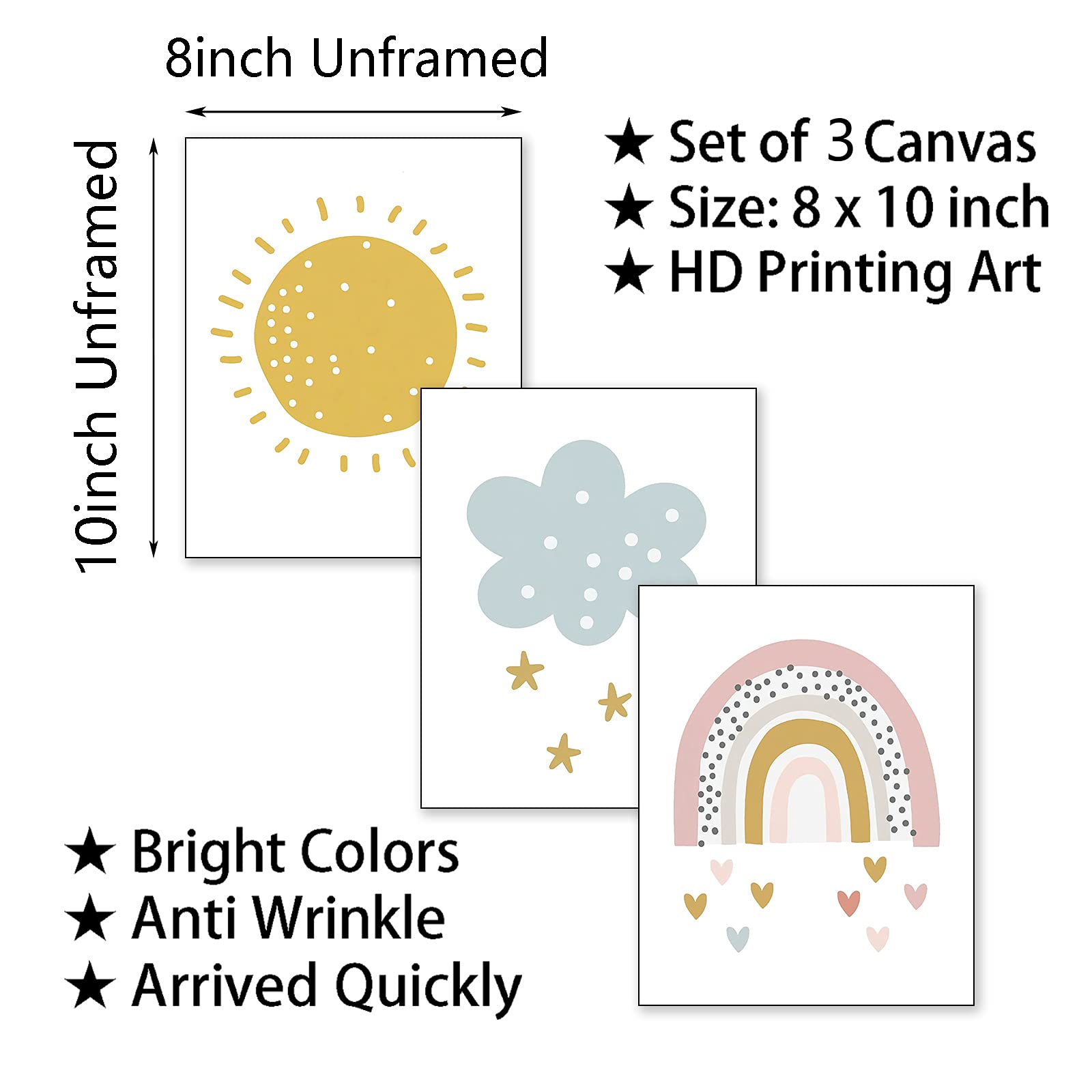 Vlejoy Rainbow Canvas Painting Sunshine Wall Art Print and Cloud Posters Prints for Girls Room Decor Nursery Set of 3 (8x10inch ) No Frame, Love Rainbow, 8 x 10 Inch