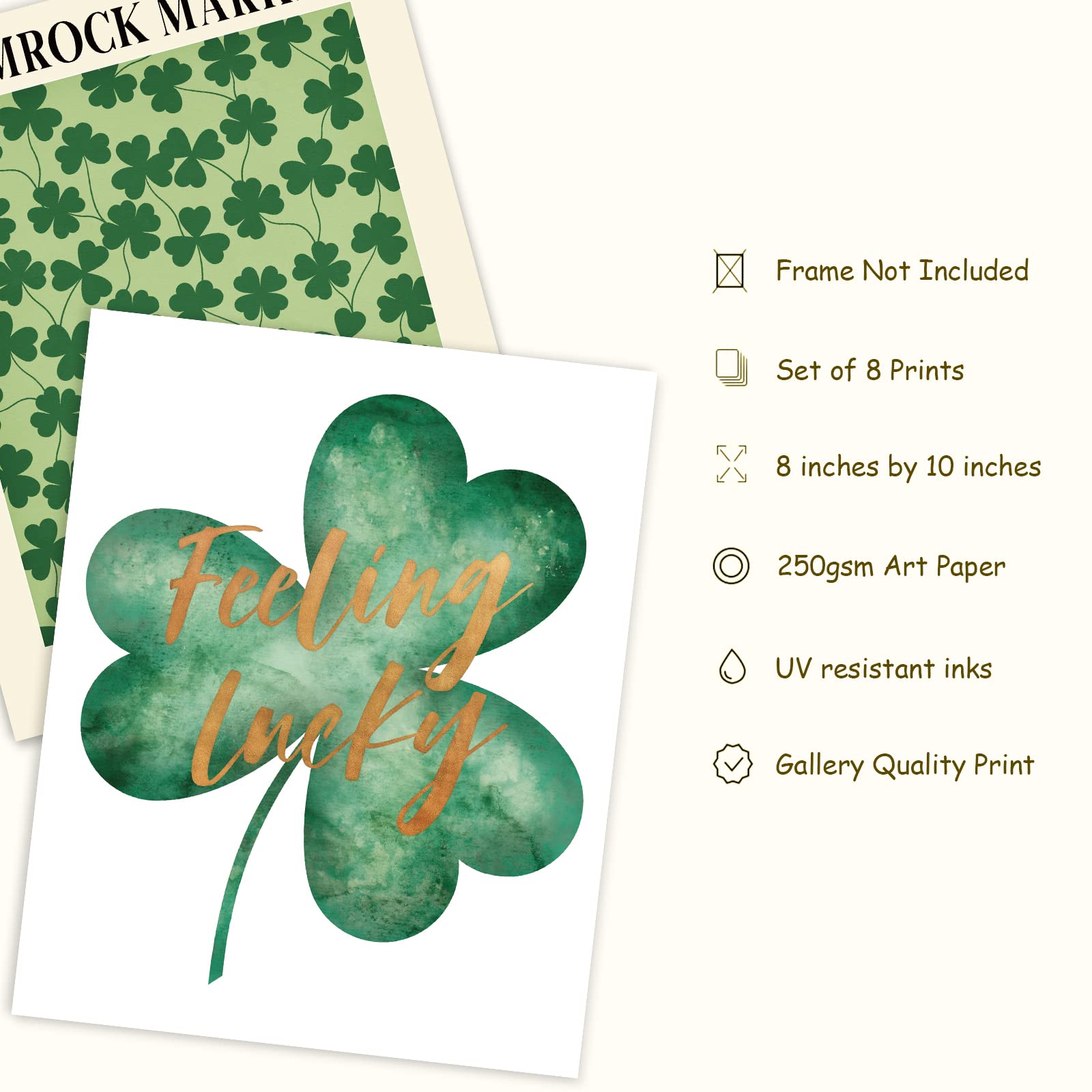- What You Get - The package comes with 8pcs St Patrick's Day theme wall art prints, they are all in a different design, suitable for St Patrick's Day decoration. The wall art prints are UNFRAMED.