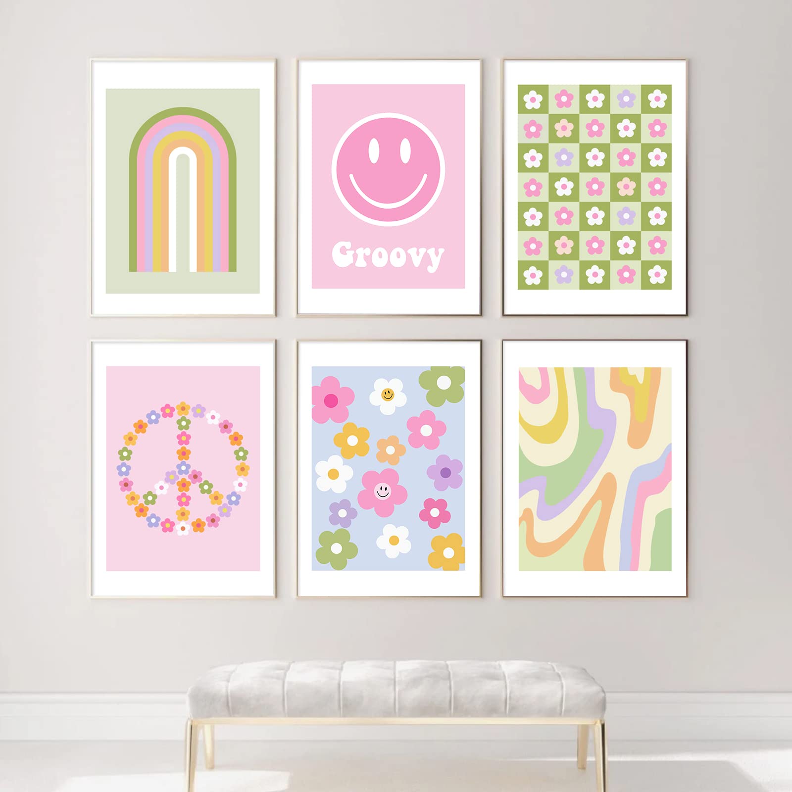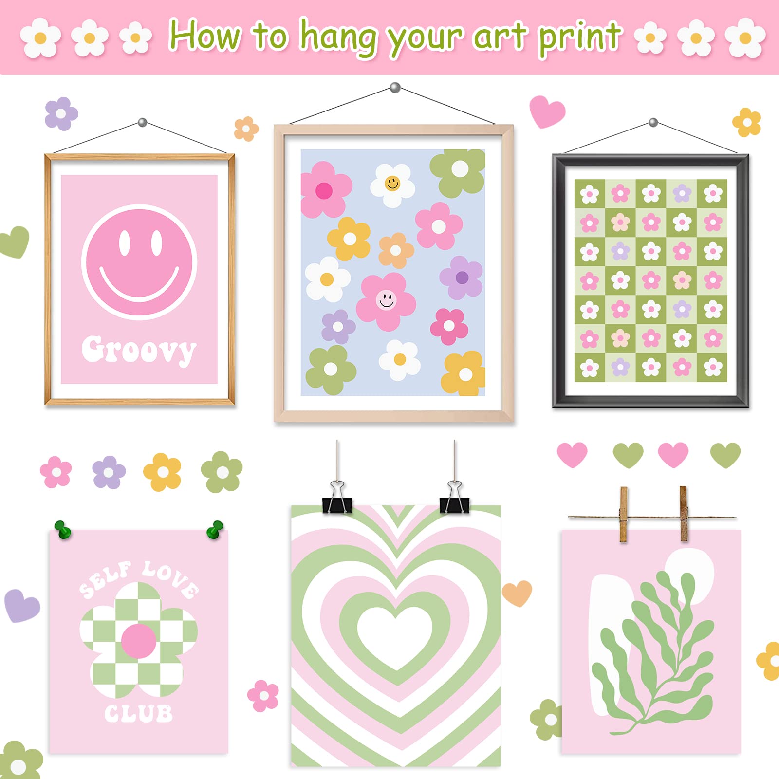 - Danish Pastel Theme – These art posters are all in different pastel design, mainly colored in pink and green, incorporating patterns of flowers, hearts, smiley faces, etc., the style design is very beautiful, conveying a positive, peace-loving design attitude, perfect for decorating a teen's room.