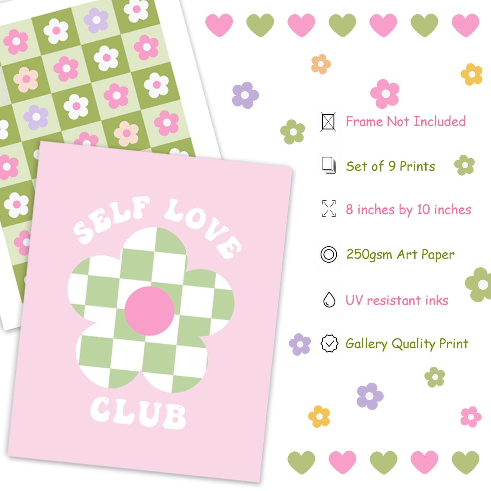 Whaline 9Pcs Preppy Posters Danish Pastel Wall Art Prints Room Decor for Teen Girls Bedroom College Dorm Room Posters Decorations(UNFRAMED 8x10)