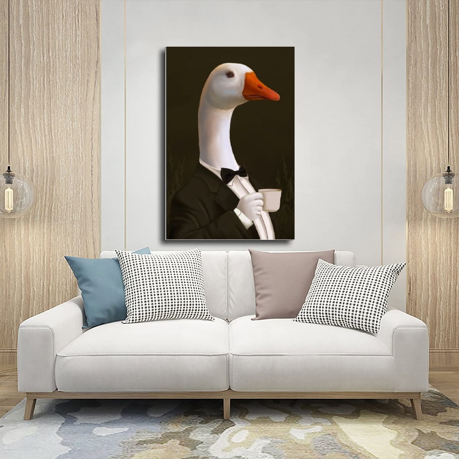 XZHFB-Elegant Gentleman Duck with Coffee-canvas-poster-painting Canvas Poster Wall Art Decor Print Picture Paintings for Living Room Bedroom Decoration Unframe-style 08x12inch(20x30cm)