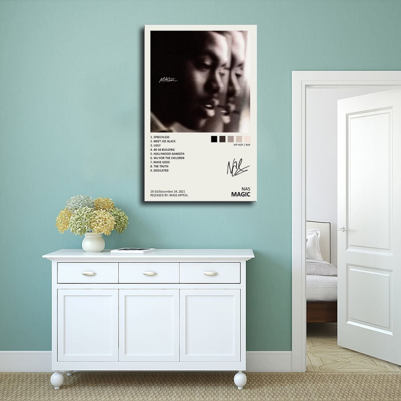 YGULC Nas Poster Magic Music Album Cover Signed Limited Poster Canvas Poster Wall Art Decor Print Picture Paintings for Living Room Bedroom Decoration Unframe:12x18inch(30x45cm)