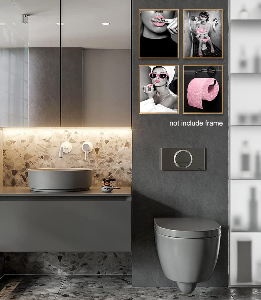 zaixko Bathroom Decor Fashion Women Canvas Prints Pink Wall Decor Black and Pink Pictures for Bathroom Glam Wall Art Canvas Posters Pink Bathroom Decor
