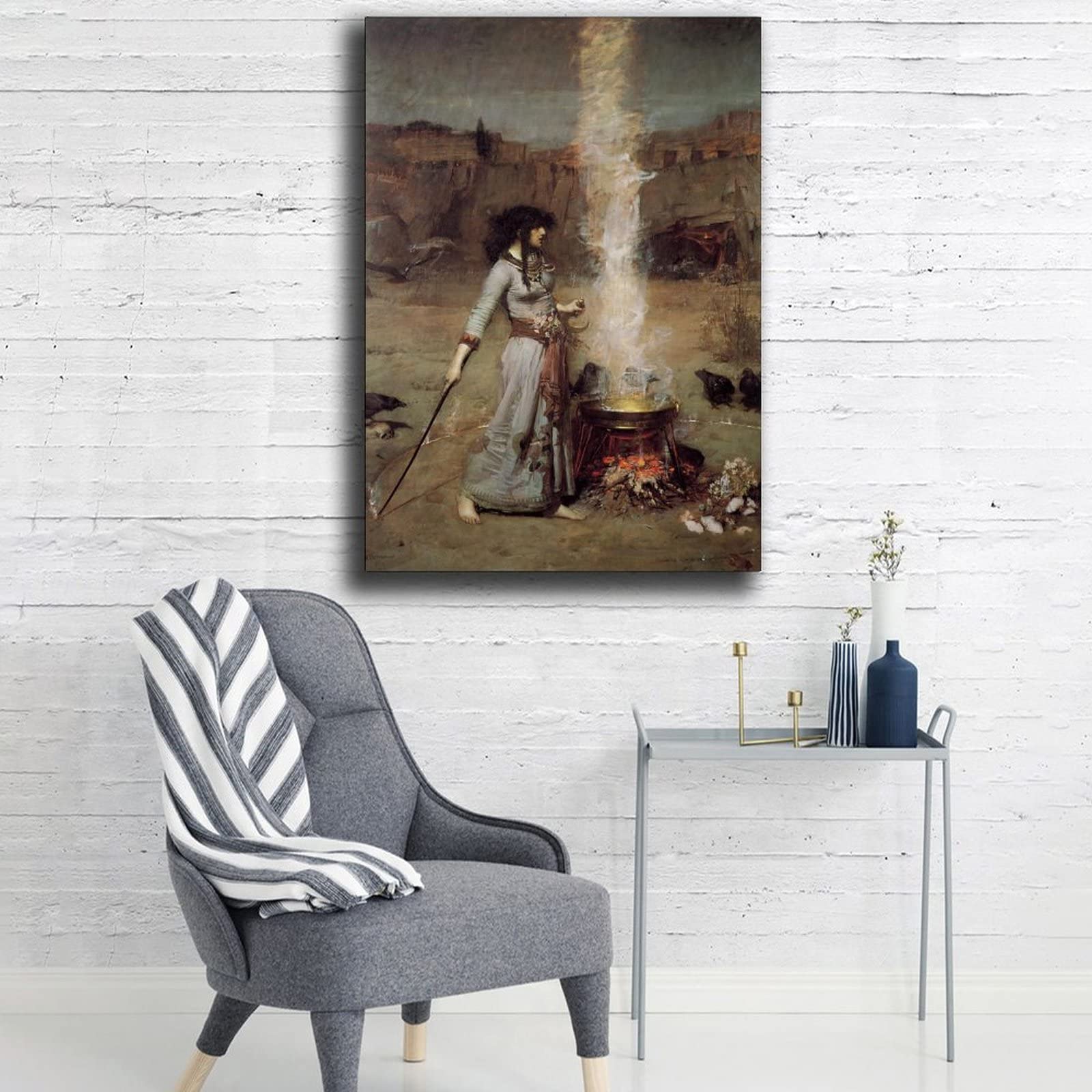 ZBIN Magic Circle 1886 by John William Waterhouse Wall Art Canvas Print Posters Home Decor Painting Pictures Living Room Bedroom Decorative Poster 08x12inch Unframed