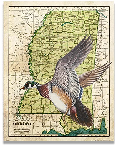 Details: Mississippi State Map Wood Duck Hunting Art Print