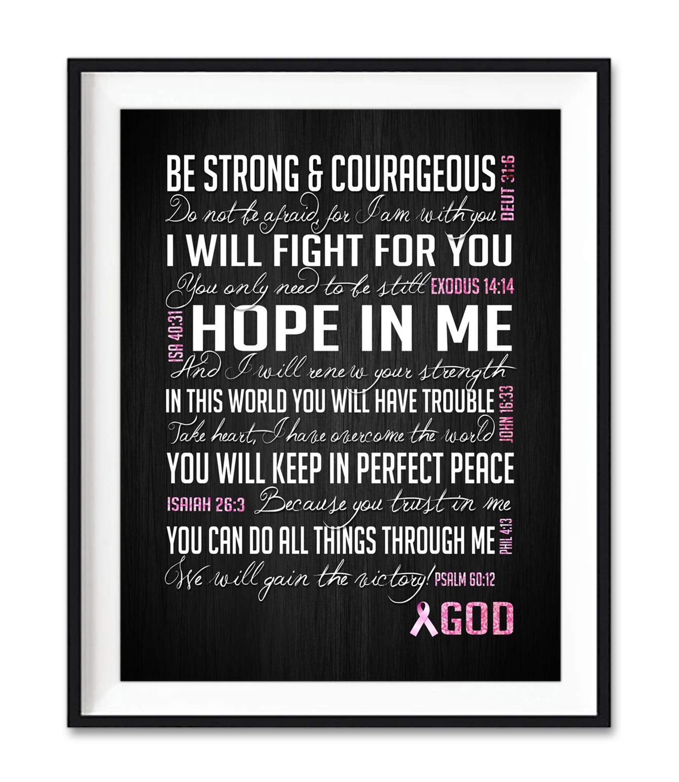 Be Strong and Courageous, Breast Cancer Awareness Encouragement Art Print, Unframed, Pink Survivor Bible Verse Scriptures Poster Gift for Her, 5x7 inches