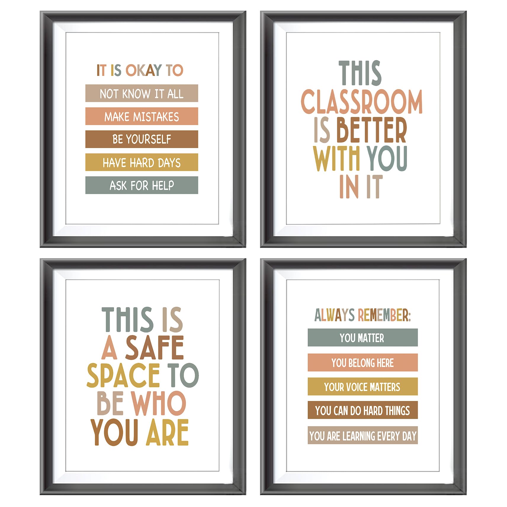Boho Classroom Quotes Mental Health Positive Affirmations Poster Prints for Teens Room Playroom Nursery Classroom Decor,Inspirational Decorations Prints Wall Art Unframed 4pcs 8x10 Inches (8Wx10L)