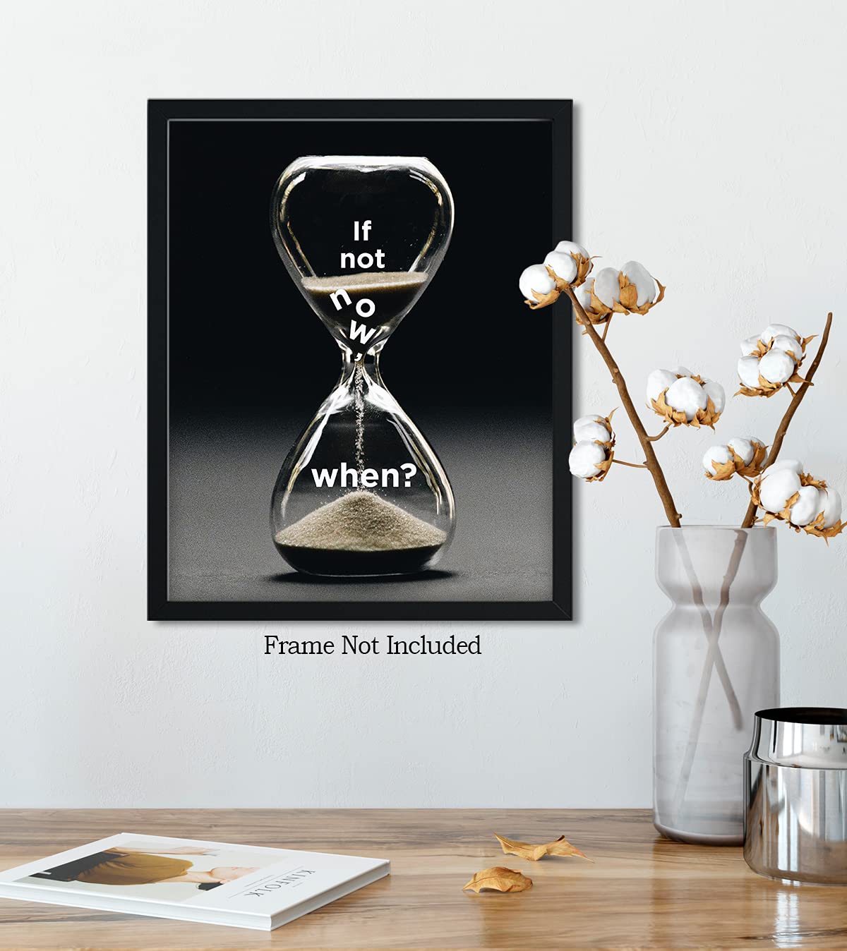 Govivo If Not Now, When? - Motivational Quote Wall Art Print - Wall Decor Print, Poster or Canvas for Office, Cubicle and Bedroom - Inspirational Wall Art for Women and Men - 8x10 unframed print