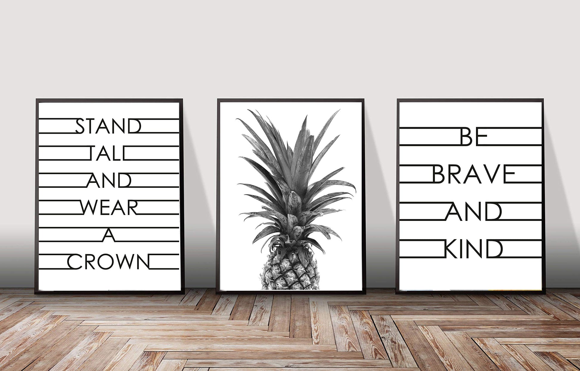 - DECORATIVE PINEAPPLE PRINT: Black and white hanging contemporary nature quote family posters