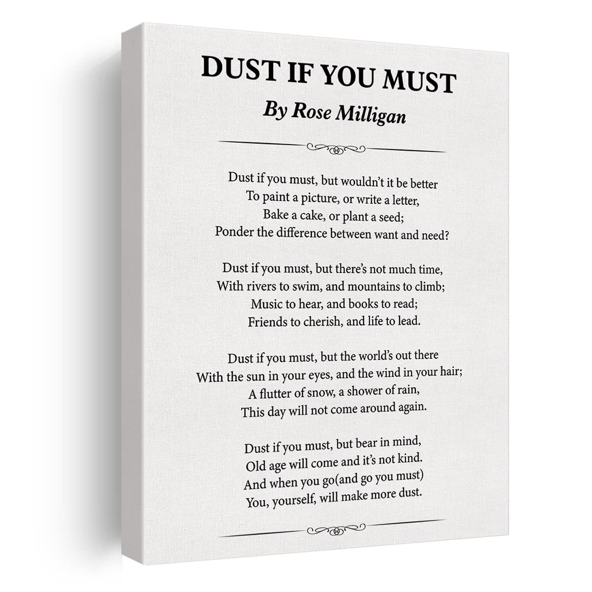 Motivational Dust If You Must poetry Canvas Wall Art Print Poster Painting Framed Modern Artwork for Home Parlour Office Decor 12 X 15 Inch