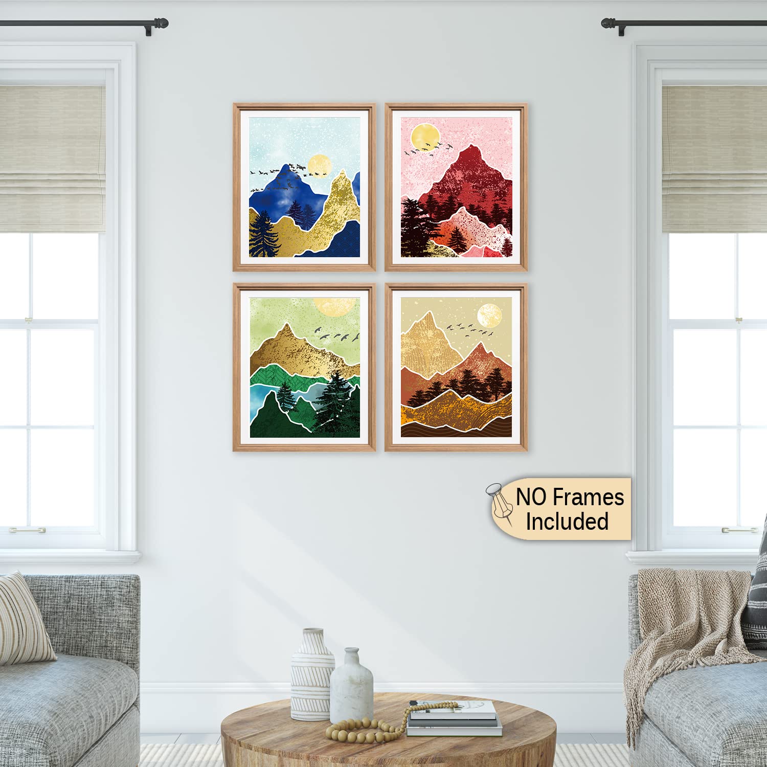 Mountain Wall Decor Print, Posters for Room Aesthetic Mid Century Modern Nature Wall Art for Living Room, Nature Wall Art(8x10 in set of 4 Unframed) Abstract Prints of Mountain Wall Art
