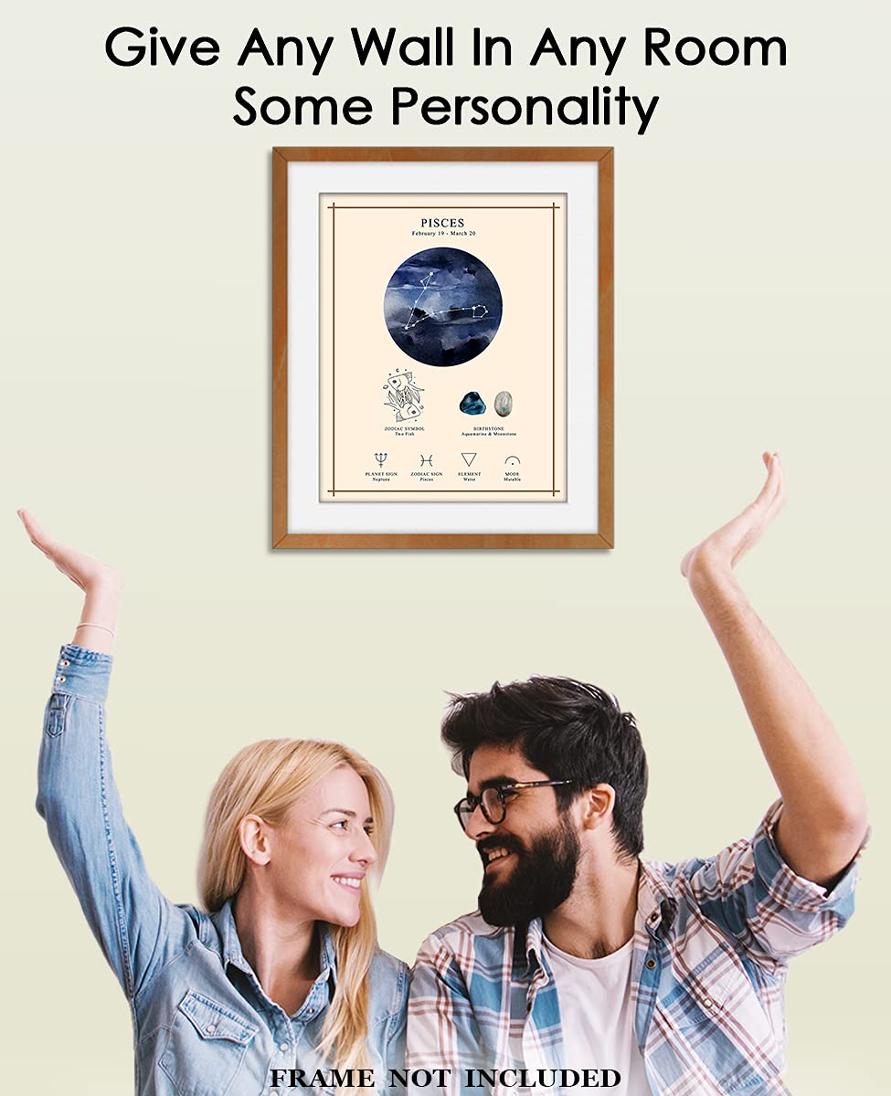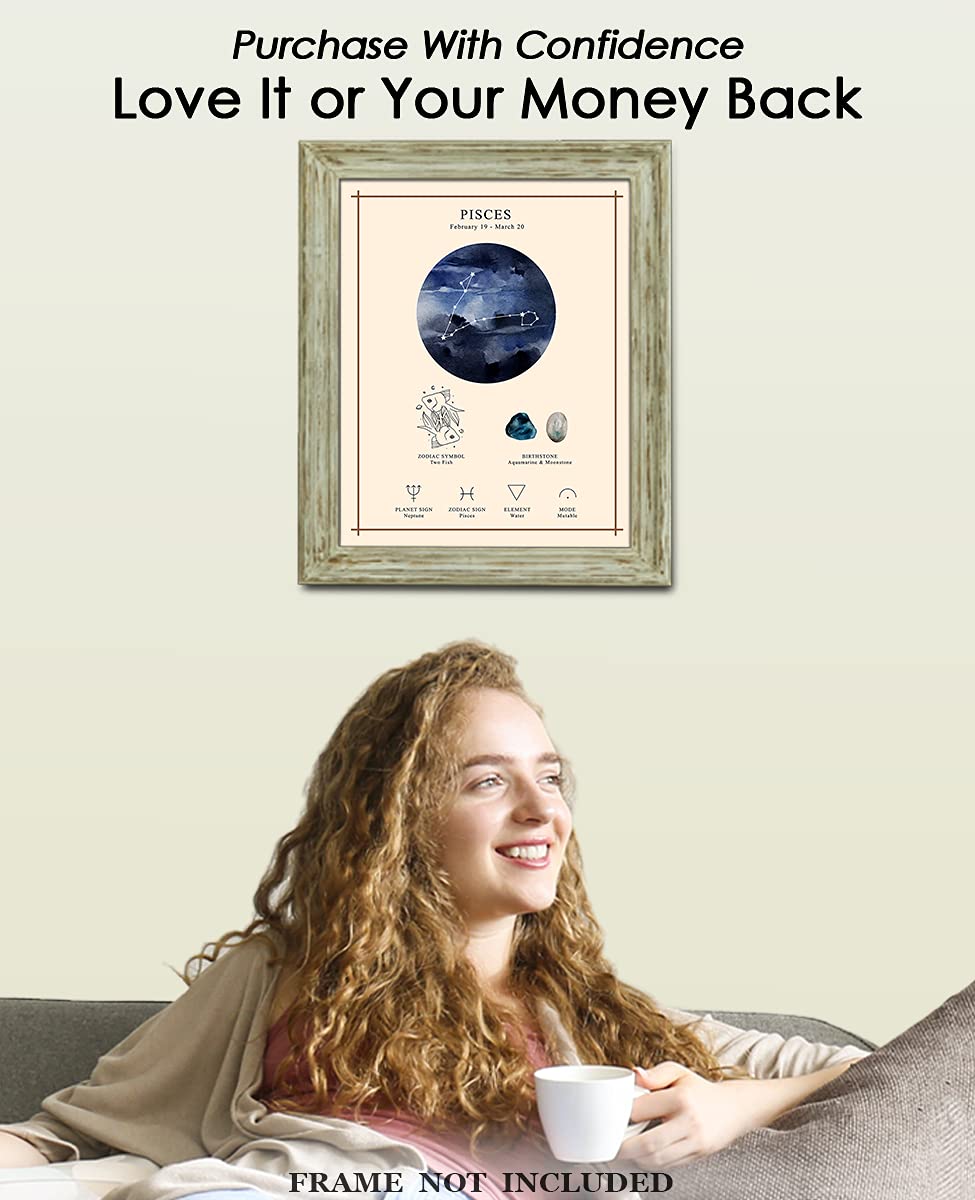 Pisces Zodiac Astrology Poster: Unique Astronomy Boho Wall Art Poster for Home, Office, Bedroom & Living Room Decor | Unframed Posters 8x10"