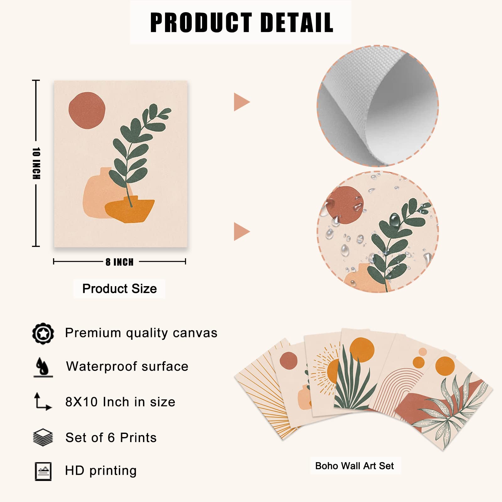 - 🌴【Purchase Instructions】Boho Paintings Pictures size is 8x10 inches x 6pcs (20x25cm). Please note that no picture frames is included! The use of better raw materials than peers, waterproof and anti-wrinkle, only to give you a better experience.