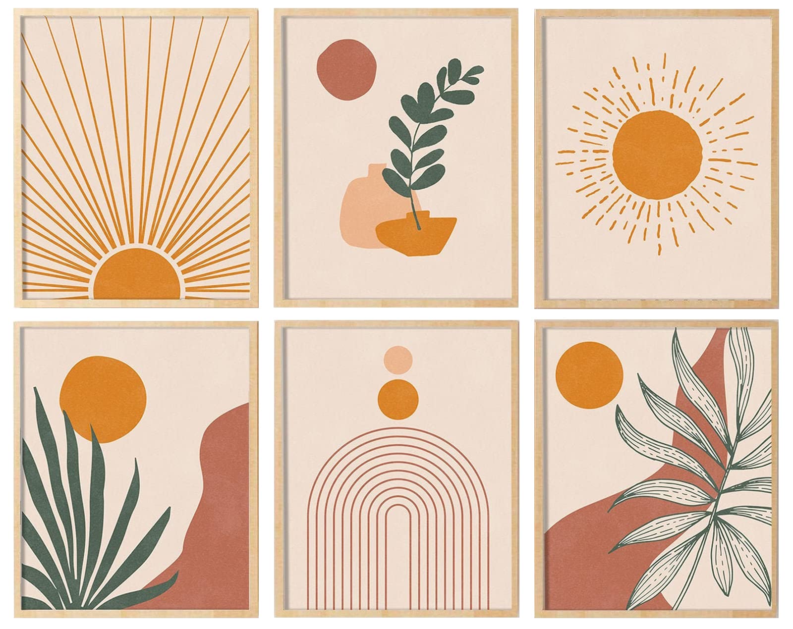 - 🌴【Boho Wall Art】Derived from bohemian style, abstraction and minimalism, we combined Sun, Sunrise, Palm Leaf, Line, Monstera and other elements to design this art piece. Let it be the perfect art decoration for your room.