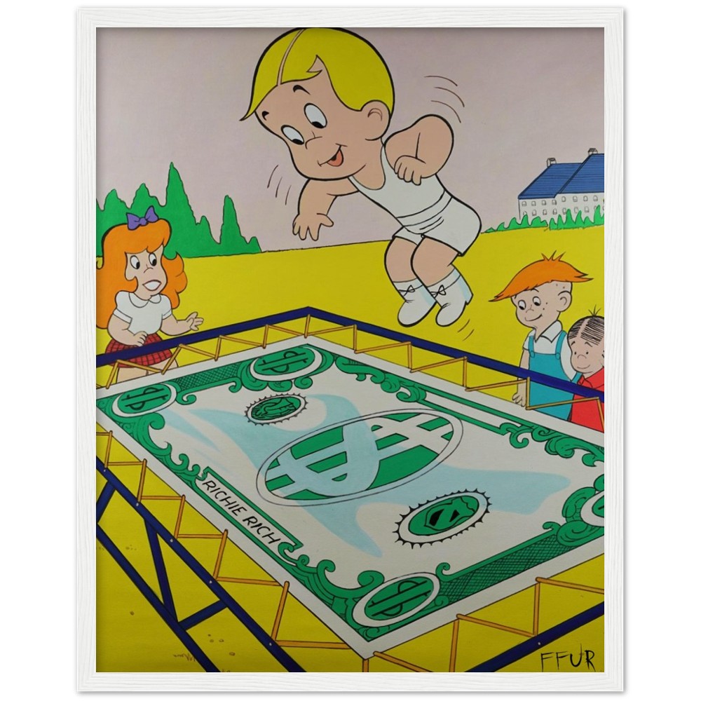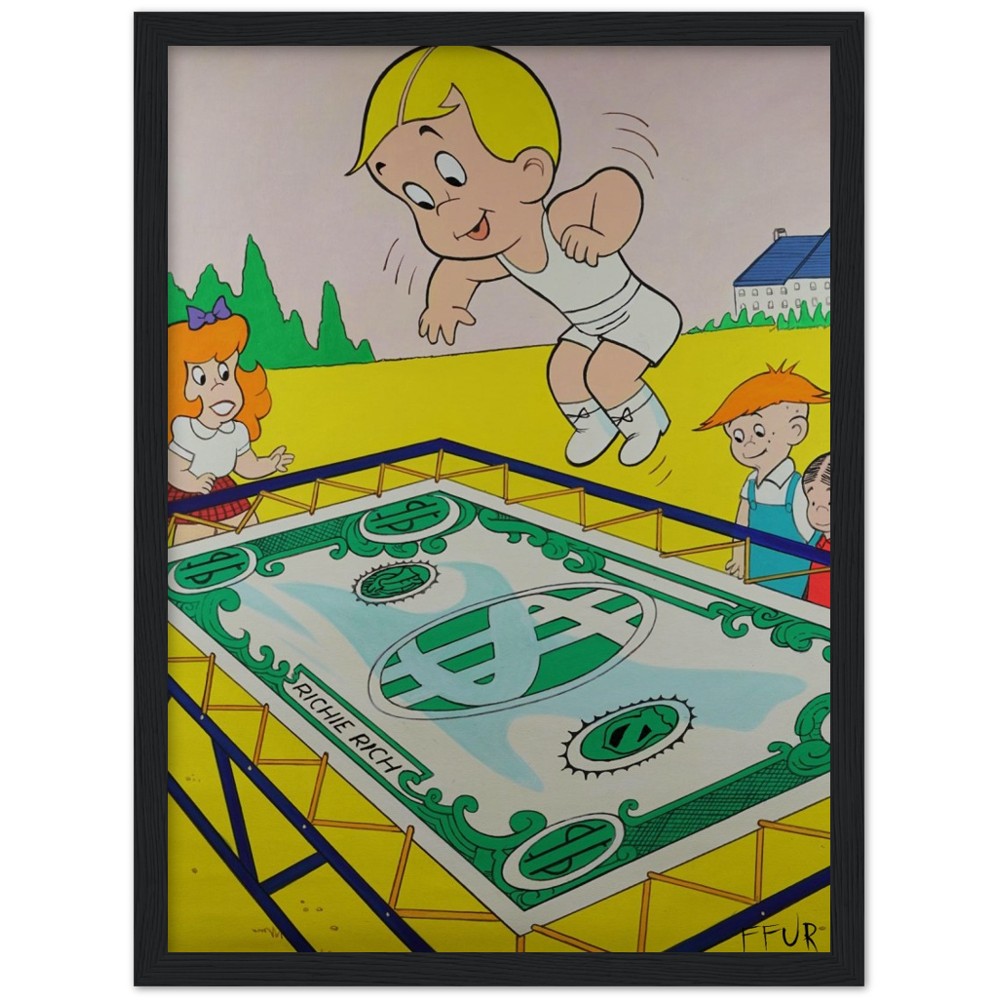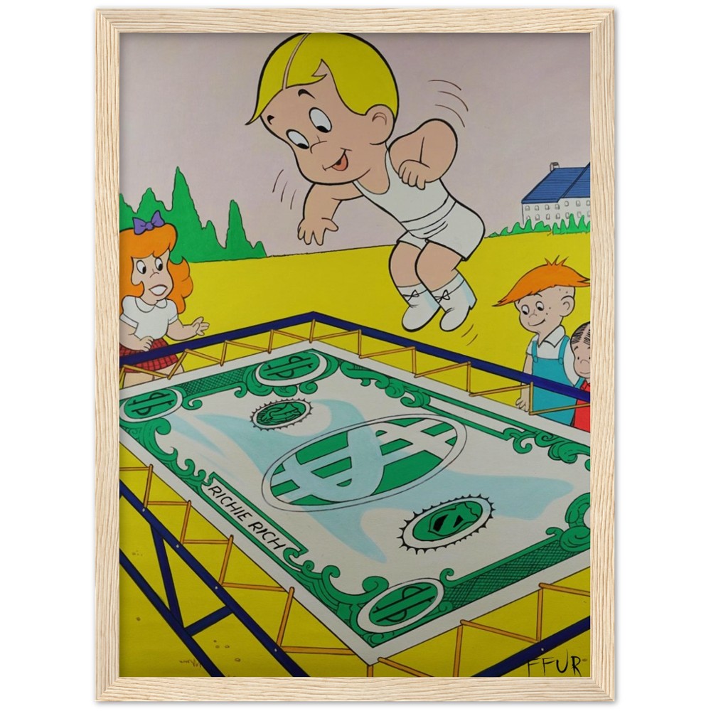 Archival Matte Paper Wooden Framed Poster - Richie Rich "Stretching Dollar" Wall Art by FFUR