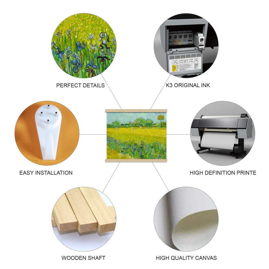 VanSP 8-32inch View of Arles with Irises in The Foreground Wall Art Van Gogh Oil Painting Poster Frame Hanger-Giclee Canvas Prints with Wooden Scroll 26x20in(67x50cm)